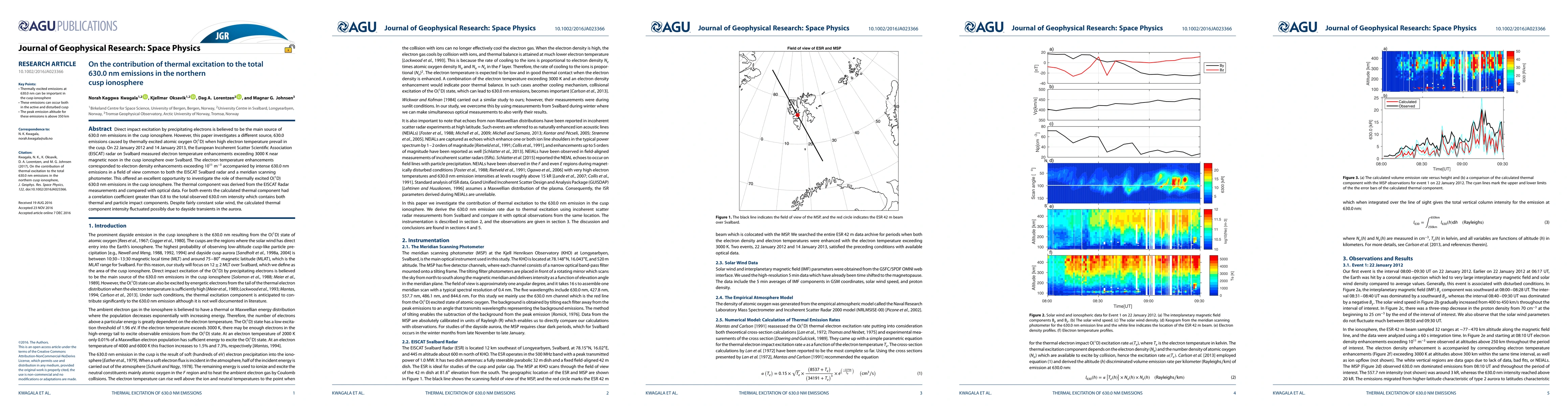 Direct impact excitation by precipitating electrons is believed to be the main source of 630.0 nm emissions in the cusp ionosphere. However, this paper investigates a different source, 630.0 emissions caused by thermally excited atomic oxygen O$(^{1}$D) when high electron temperature prevail in the cusp. On 22 January 2012 and 14 January 2013, the European Incoherent Scatter Scientific Association (EISCAT) radar on Svalbard measured electron temperature enhancements exceeding 3000 K near magnetic noon in the cusp ionosphere over Svalbard. The electron temperature enhancements corresponded to electron density enhancements exceeding $10^{11}$m$^{-3}$ accompanied by intense 630.0 nm emissions in a field of view common to both the EISCAT Svalbard radar and a meridian scanning photometer. This offered an excellent opportunity to investigate the role of thermally excited O$(^{1}$D) 630.0 nm emissions in the cusp ionosphere. The thermal component was derived from the EISCAT Radar measurements and compared with optical data. For both events the calculated thermal component had a correlation coefficient greater than 0.8 to the total observed 630.0 nm intensity which contains both thermal and particle impact components. Despite fairly constant solar wind, the calculated thermal component intensity fluctuated possibly due to dayside transients in the aurora.