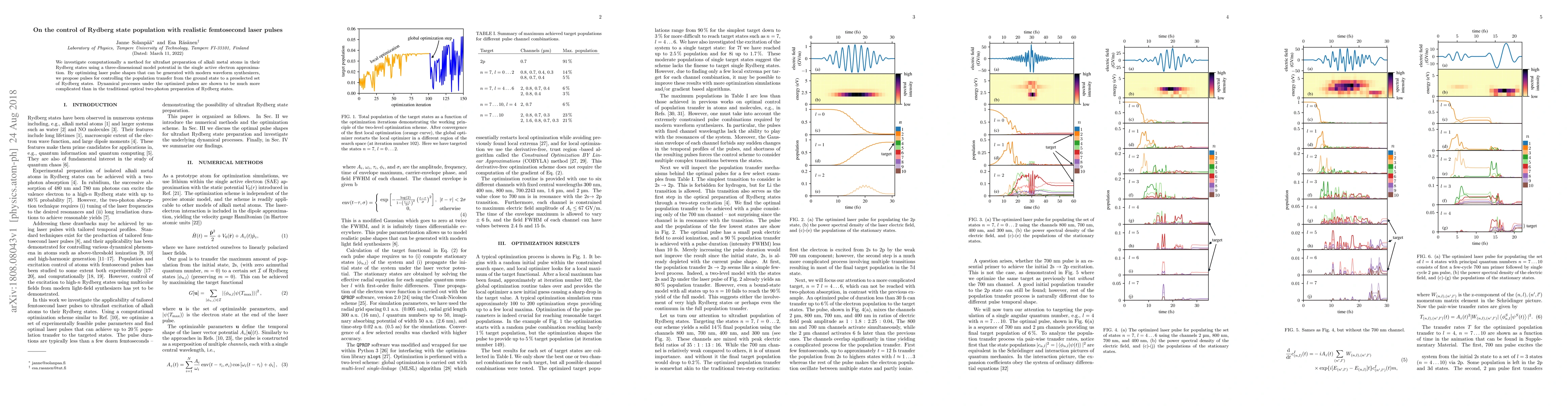 We investigate computationally a method for ultrafast preparation of alkali metal atoms in their Rydberg states using a three-dimensional model potential in the single active electron approximation. By optimizing laser pulse shapes that can be generated with modern waveform synthesizers, we propose pulses for controlling the population transfer from the ground state to a preselected set of Rydberg states. Dynamical processes under the optimized pulses are shown to be much more complicated than in the traditional optical two-photon preparation of Rydberg states.