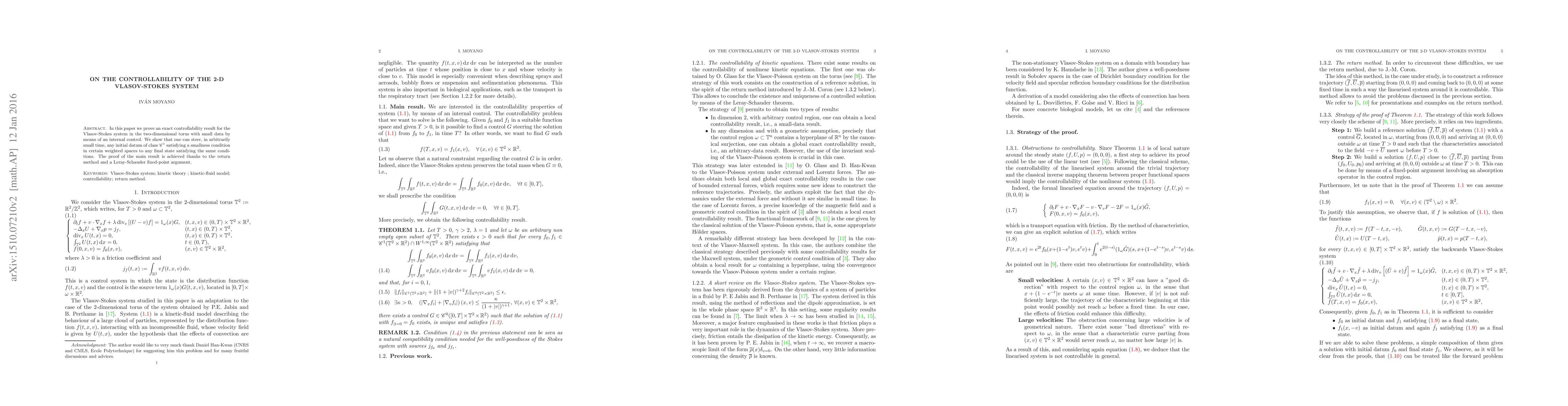 Researchers prove they can control the 2-D Vlasov-Stokes system to reach any desired state in a short time, using an internal control mechanism.