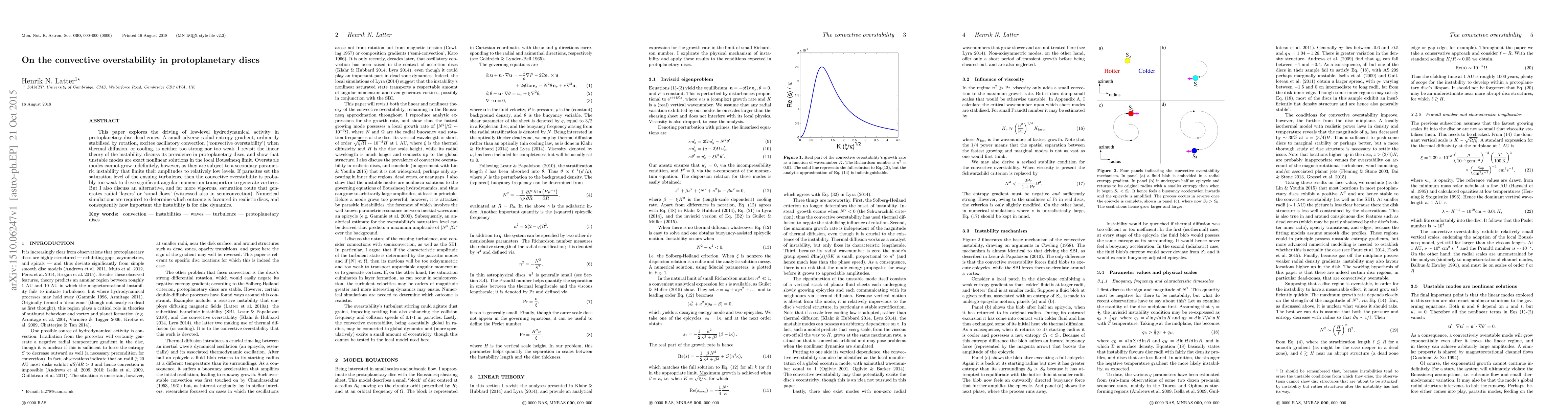 This paper explores the driving of low-level hydrodynamical activity in protoplanetary-disc dead zones. A small adverse radial entropy gradient, ordinarily stabilised by rotation, excites oscillatory convection (`convective overstability') when thermal diffusion, or cooling, is neither too strong nor too weak. I revisit the linear theory of the instability, discuss its prevalence in protoplanetary discs, and show that unstable modes are exact nonlinear solutions in the local Boussinesq limit. Overstable modes cannot grow indefinitely, however, as they are subject to a secondary parametric instability that limits their amplitudes to relatively low levels. If parasites set the saturation level of the ensuing turbulence then the convective overstability is probably too weak to drive significant angular momentum transport or to generate vortices. But I also discuss an alternative, and far more vigorous, saturation route that generates radial `layers' or `zonal flows' (witnessed also in semiconvection). Numerical simulations are required to determine which outcome is favoured in realistic discs, and consequently how important the instability is for disc dynamics.