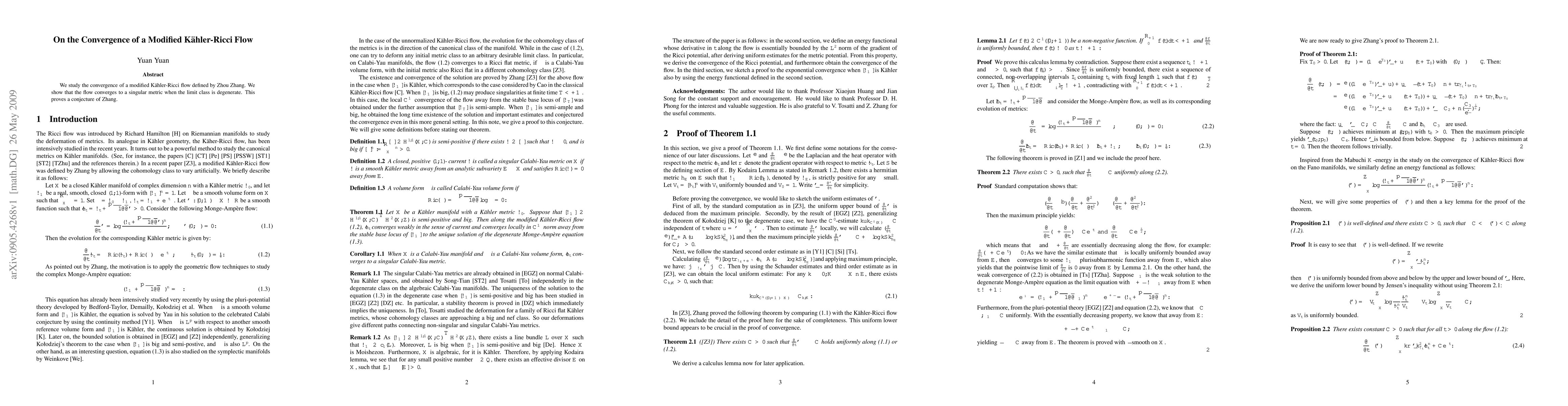 We study the convergence of a modified Kaeher-Ricci flow defined by Zhou Zhang. We show that the flow converges to a singular metric when the limit class is degenerate. This proves a conjecture of Zhang.