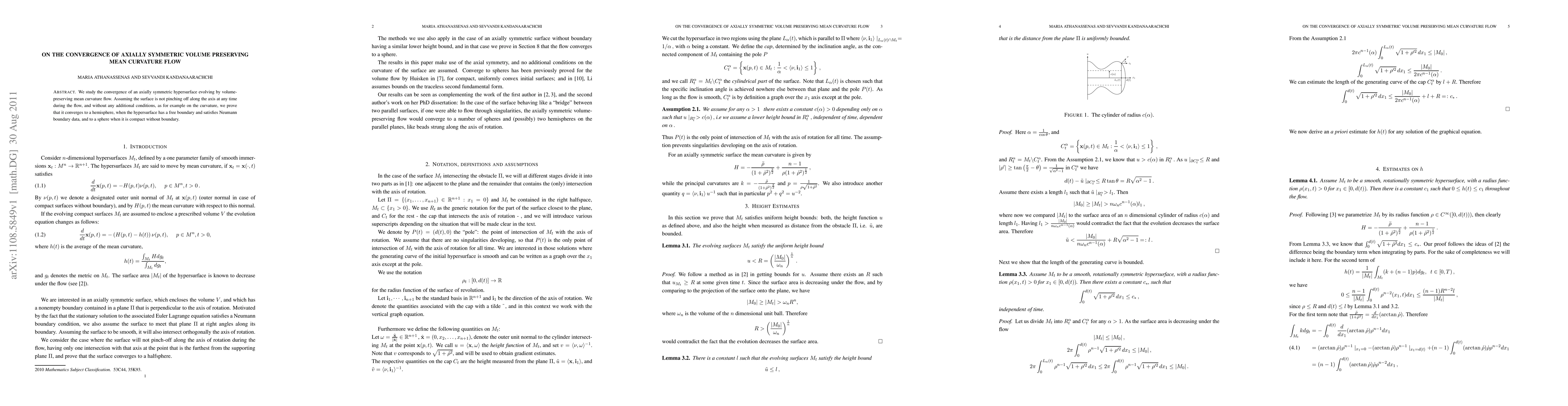 This paper proves the convergence of axially symmetric hypersurfaces evolving under volume preserving mean curvature flow to either a hemisphere with Neumann boundary data or a sphere when compact, without requiring additional curvature conditions or pinching off along the axis.