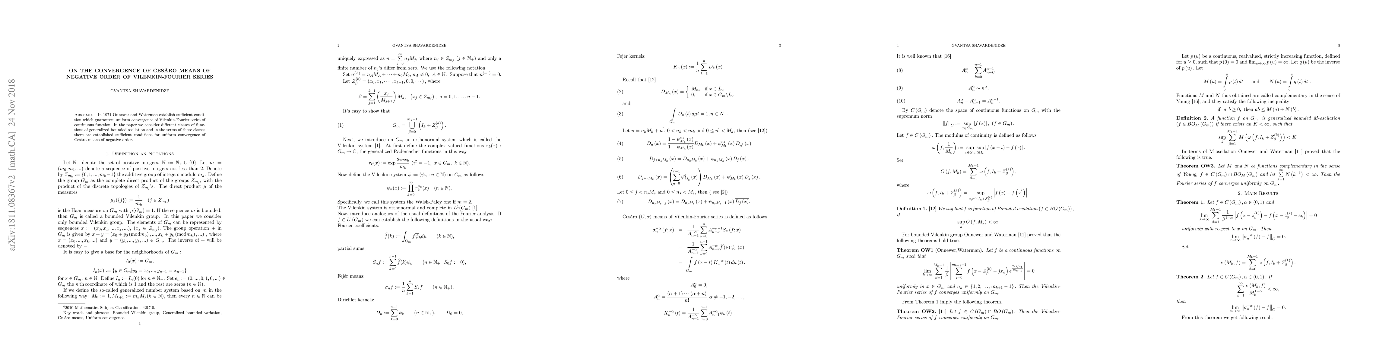 Summary: This paper extends the convergence analysis of Vilenkin-Fourier series by establishing sufficient conditions for the uniform convergence of Cesàro means of negative order. It builds on earlier work by Onnewer and Waterman, focusing on functions of generalized bounded oscillation.