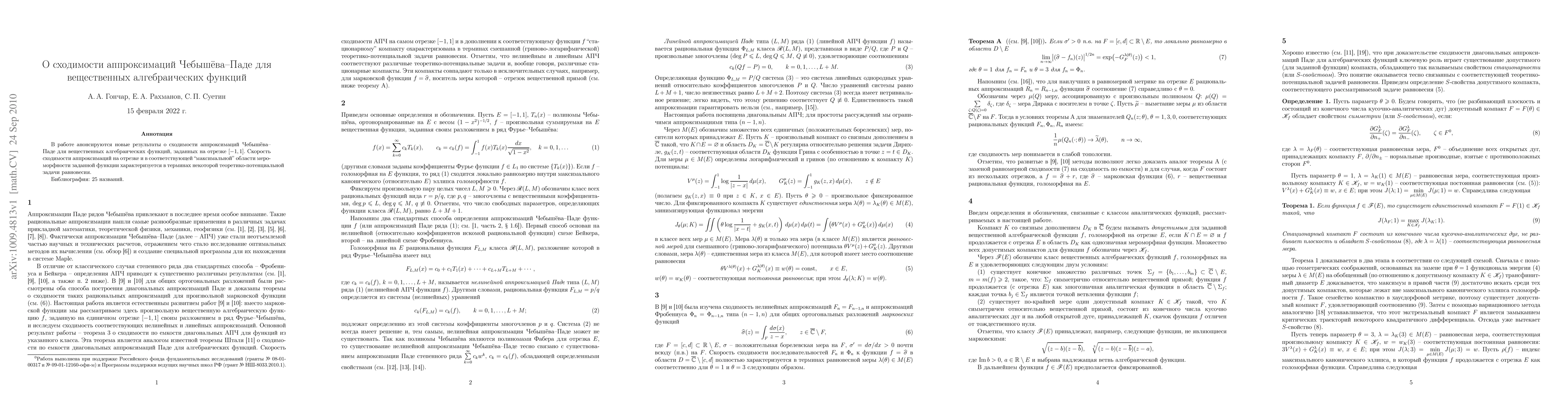 We announce some new results on the convergence of Chebyshev--Pad\'e approximations to real-valued algebraic function given on the segment $[-1,1]$. The rate of convergence on the segment and in the corresponding maximal domain of meromorphity of a given function is charactirized in terms of a theoretical potential equilibrium problem.