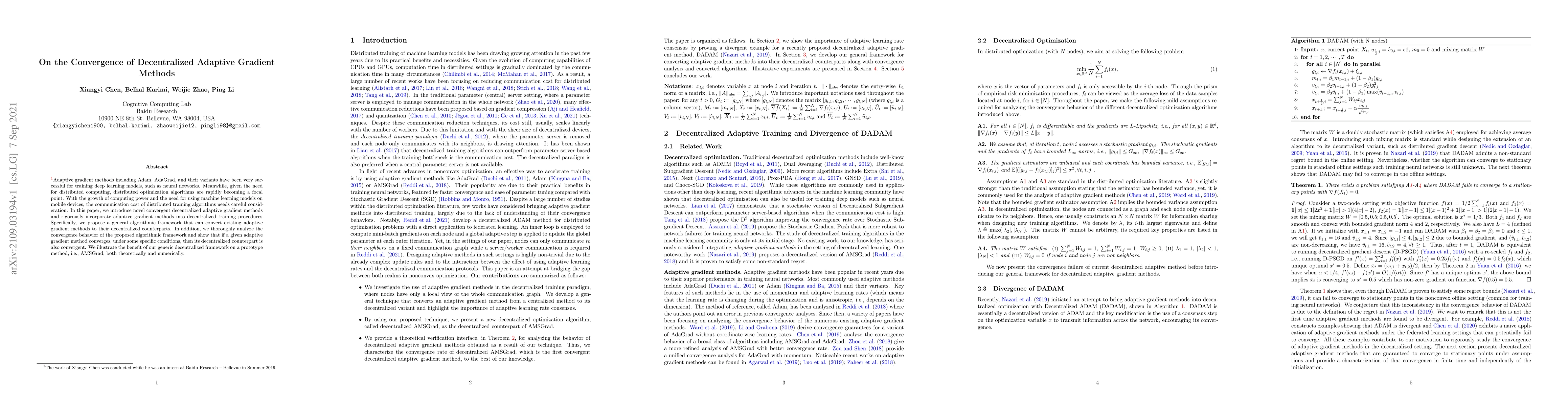 Researchers introduce a general framework for converting adaptive gradient methods to decentralized versions, showing that if an existing method converges under certain conditions, its decentralized counterpart also converges.