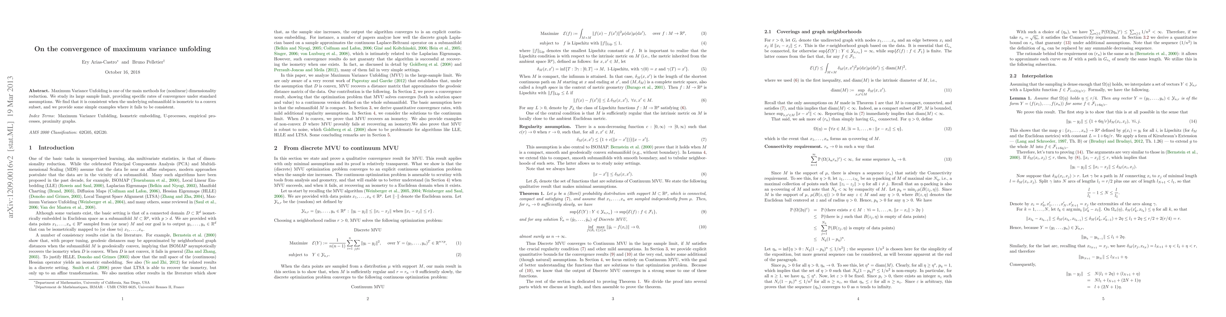 Maximum Variance Unfolding is one of the main methods for (nonlinear) dimensionality reduction. We study its large sample limit, providing specific rates of convergence under standard assumptions. We find that it is consistent when the underlying submanifold is isometric to a convex subset, and we provide some simple examples where it fails to be consistent.