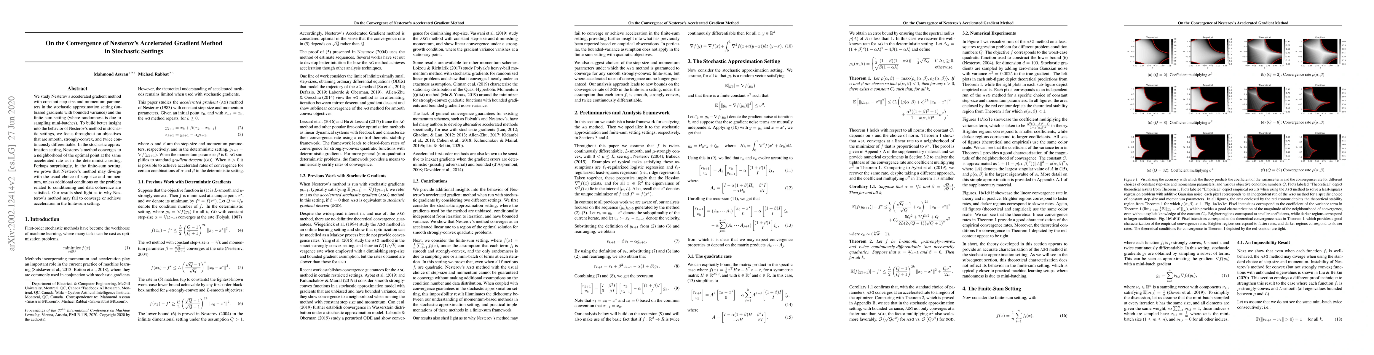 Nesterov's accelerated gradient method converges at an accelerated rate in stochastic approximation settings, but may diverge in finite-sum settings unless specific conditions on problem conditioning and data coherence are met. This study provides insights into the method's behavior in stochastic optimization scenarios.