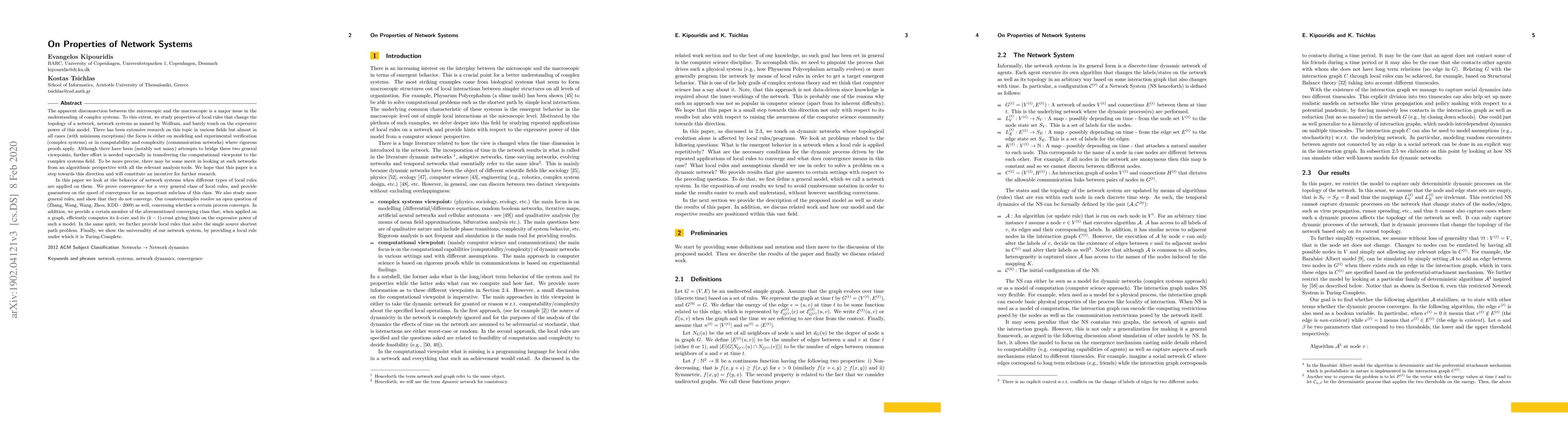 The apparent disconnection between the microscopic and the macroscopic is a major issue in the understanding of complex systems. To this extend, we study the convergence of repeatedly applying local rules on a network, and touch on the expressive power of this model. We look at network systems and study their behavior when different types of local rules are applied on them. For a very general class of local rules, we prove convergence and provide a certain member of this class that, when applied on a graph, efficiently computes its k-core and its (k-1)-crust giving hints on the expressive power of such a model. Furthermore, we provide guarantees on the speed of convergence for an important subclass of the aforementioned class. We also study more general rules, and show that they do not converge. Our counterexamples resolve an open question of (Zhang, Wang, Wang, Zhou, KDD- 2009) as well, concerning whether a certain process converges. Finally, we show the universality of our network system, by providing a local rule under which it is Turing-Complete.