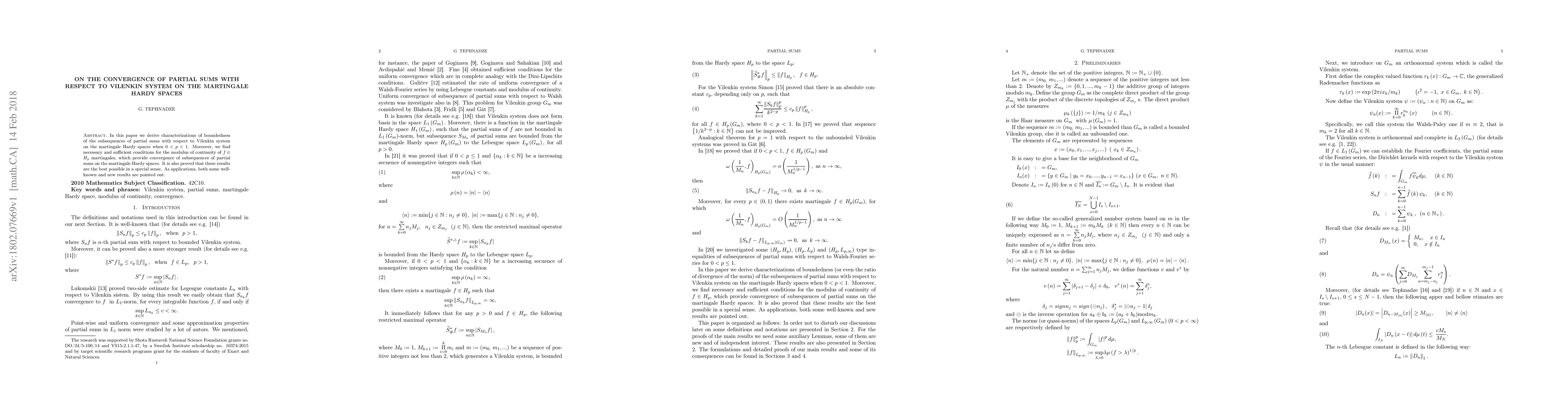 This paper characterizes boundedness of subsequences of partial sums with respect to a Vilenkin system on martingale Hardy spaces for $0<p<1$, providing necessary and sufficient conditions for convergence of these subsequences. It also outlines applications and demonstrates the optimality of its results.