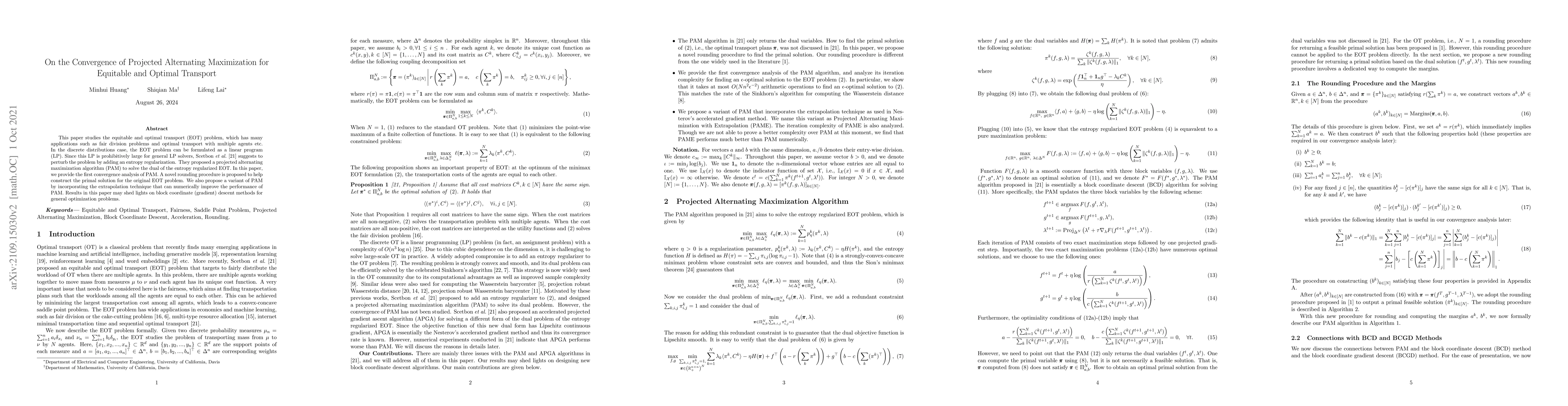Researchers analyze a method for solving equitable transport problems using projected alternating maximization, providing the first convergence analysis and proposing a novel rounding procedure to improve performance.