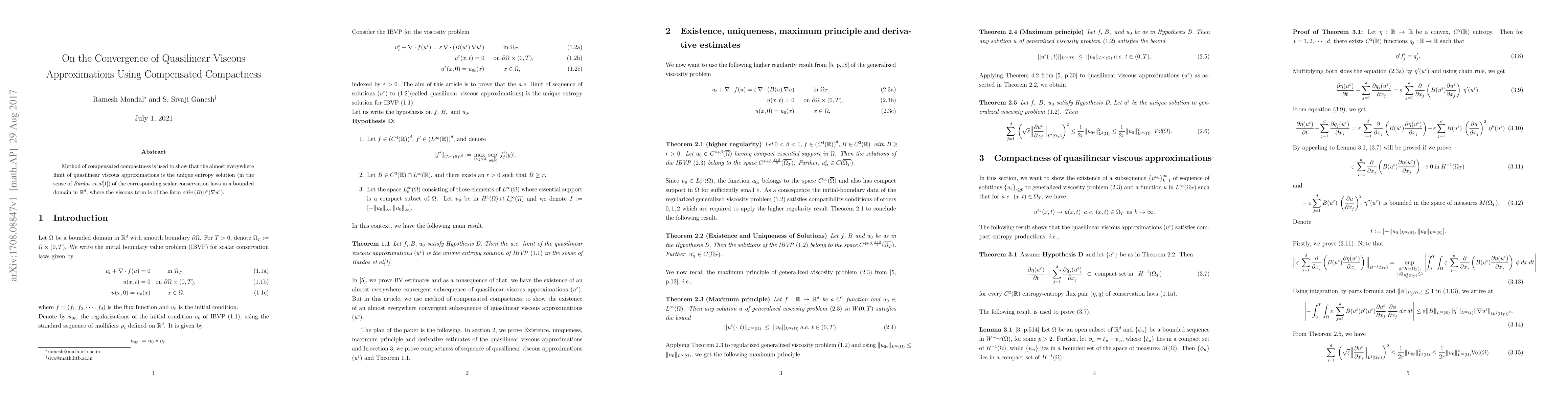 This paper shows that a specific type of mathematical model for fluid dynamics (quasilinear viscous approximations) converges to the unique solution of the corresponding conservation laws in a bounded domain. The convergence is proven using the method of compensated compactness.