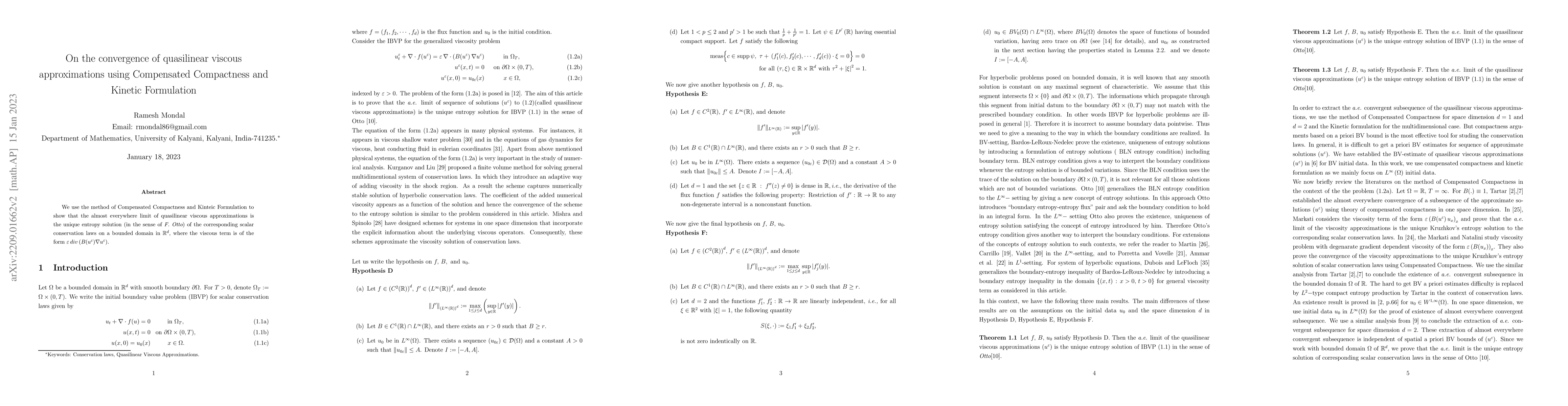 This paper demonstrates that quasilinear viscous approximations converge almost everywhere to the unique entropy solution of scalar conservation laws using Compensated Compactness and Kinetic Formulation. The viscous term is modeled as $\varepsilon\,div\left(B(u^{\varepsilon})\nabla u^{\varepsilon}\right)$.