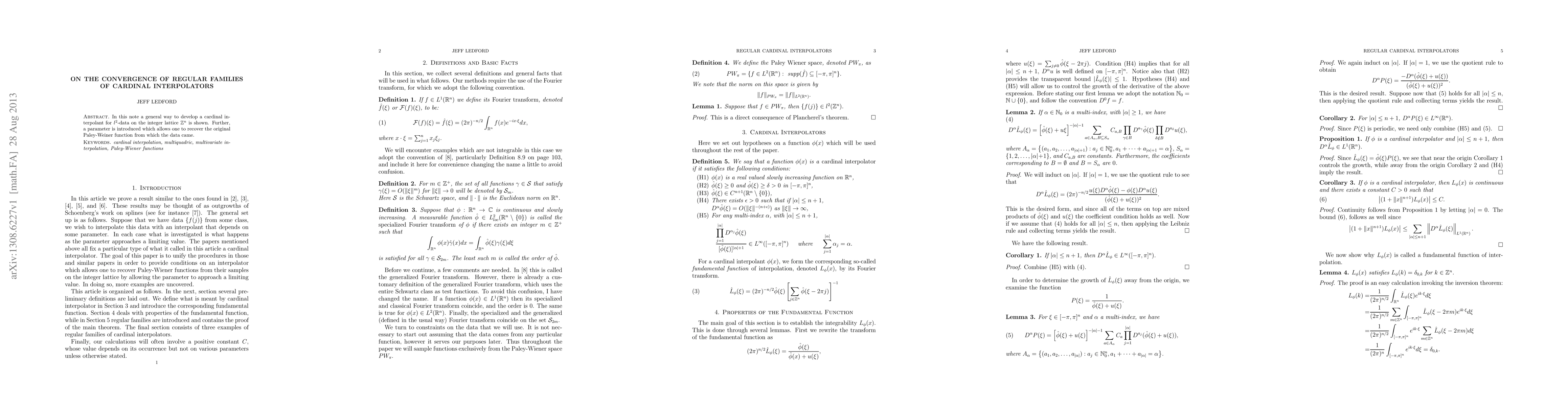 In this note a general way to develop a cardinal interpolant for $l^2$-data on the integer lattice $Z^n$ is shown. Further, a parameter is introduced which allows one to recover the original Paley-Weiner function from which the data came.
