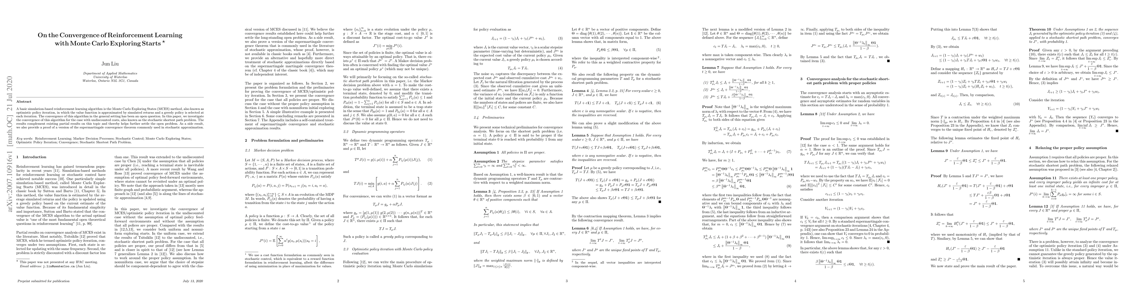 This paper investigates the convergence of the Monte Carlo Exploring Starts (MCES) algorithm for undiscounted costs, addressing an open question in reinforcement learning. It provides new results complementing existing partial results and also offers a proof of a version of the supermartingale convergence theorem.