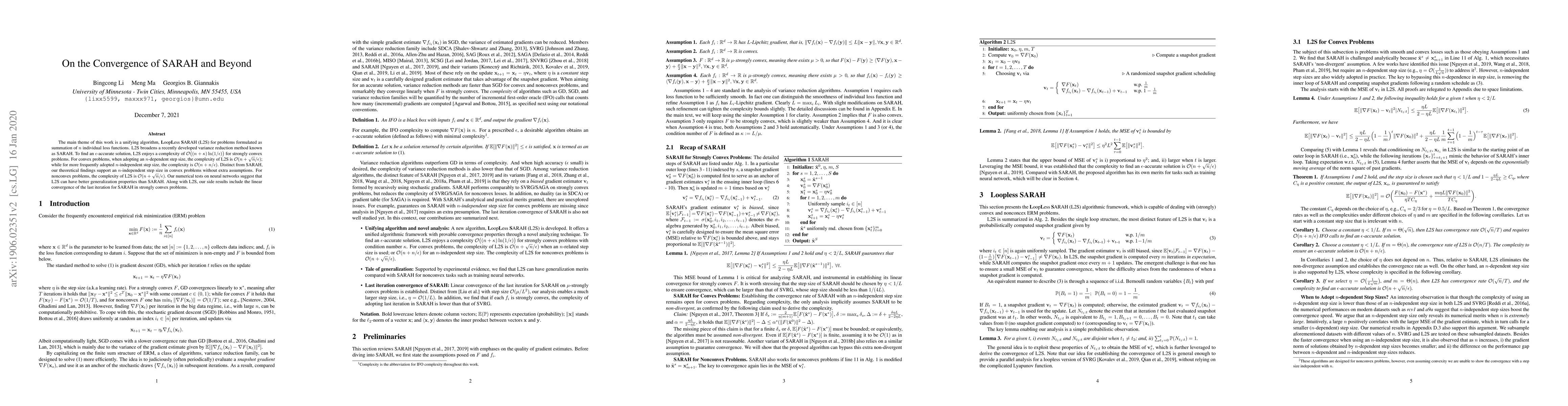 The main theme of this work is a unifying algorithm, \textbf{L}oop\textbf{L}ess \textbf{S}ARAH (L2S) for problems formulated as summation of $n$ individual loss functions. L2S broadens a recently developed variance reduction method known as SARAH. To find an $\epsilon$-accurate solution, L2S enjoys a complexity of ${\cal O}\big( (n+\kappa) \ln (1/\epsilon)\big)$ for strongly convex problems. For convex problems, when adopting an $n$-dependent step size, the complexity of L2S is ${\cal O}(n+ \sqrt{n}/\epsilon)$; while for more frequently adopted $n$-independent step size, the complexity is ${\cal O}(n+ n/\epsilon)$. Distinct from SARAH, our theoretical findings support an $n$-independent step size in convex problems without extra assumptions. For nonconvex problems, the complexity of L2S is ${\cal O}(n+ \sqrt{n}/\epsilon)$. Our numerical tests on neural networks suggest that L2S can have better generalization properties than SARAH. Along with L2S, our side results include the linear convergence of the last iteration for SARAH in strongly convex problems.