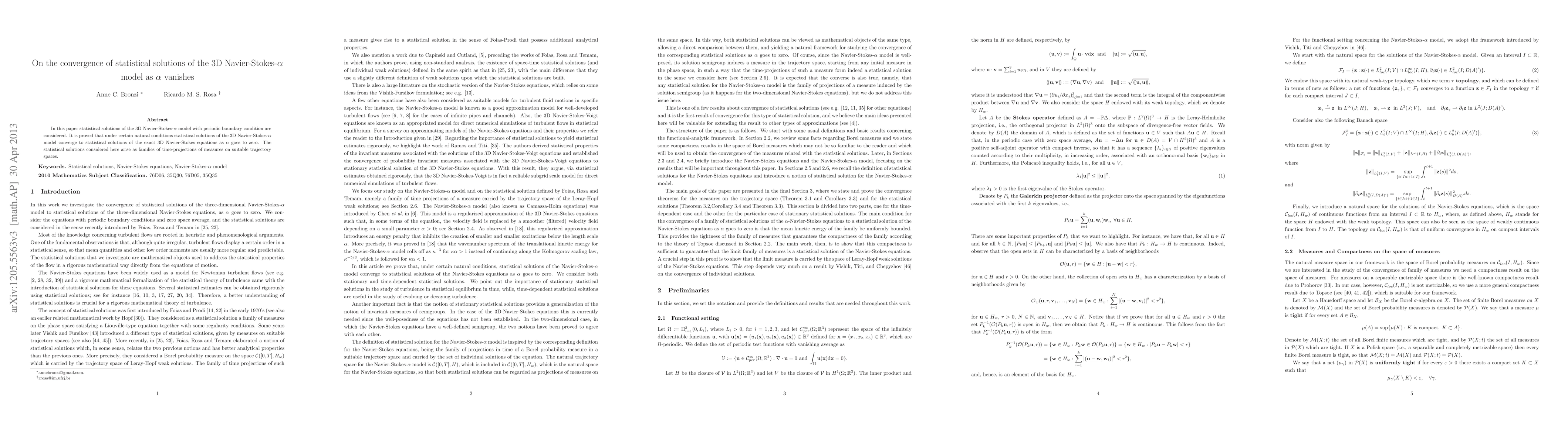 This paper proves the convergence of statistical solutions of the 3D Navier-Stokes-$\alpha$ model to those of the exact 3D Navier-Stokes equations as $\alpha$ approaches zero, under periodic boundary conditions. The statistical solutions are derived from time-projections of measures in trajectory spaces.
