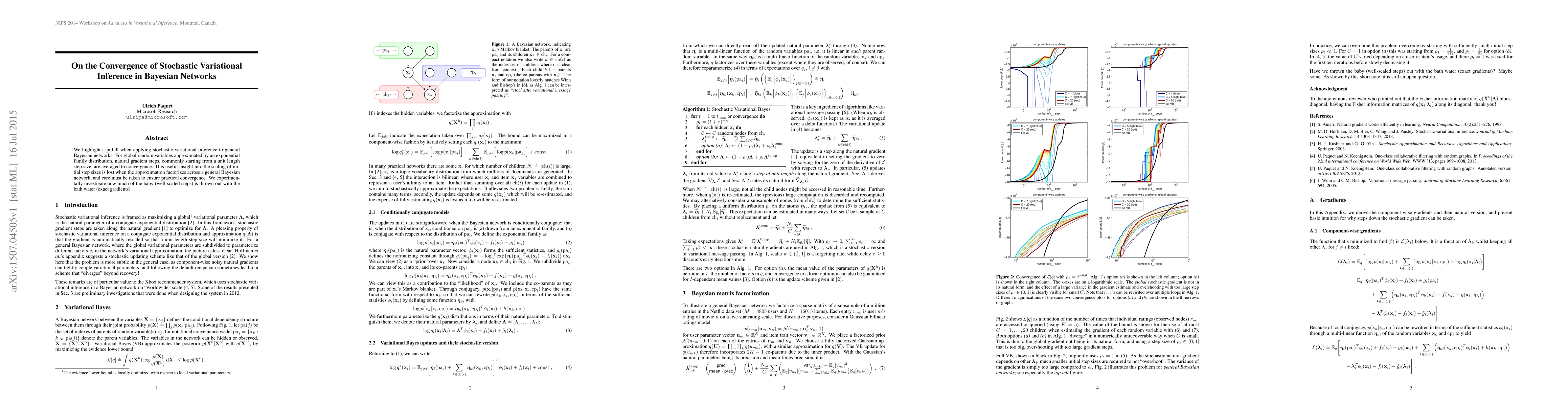 We highlight a pitfall when applying stochastic variational inference to general Bayesian networks. For global random variables approximated by an exponential family distribution, natural gradient steps, commonly starting from a unit length step size, are averaged to convergence. This useful insight into the scaling of initial step sizes is lost when the approximation factorizes across a general Bayesian network, and care must be taken to ensure practical convergence. We experimentally investigate how much of the baby (well-scaled steps) is thrown out with the bath water (exact gradients).