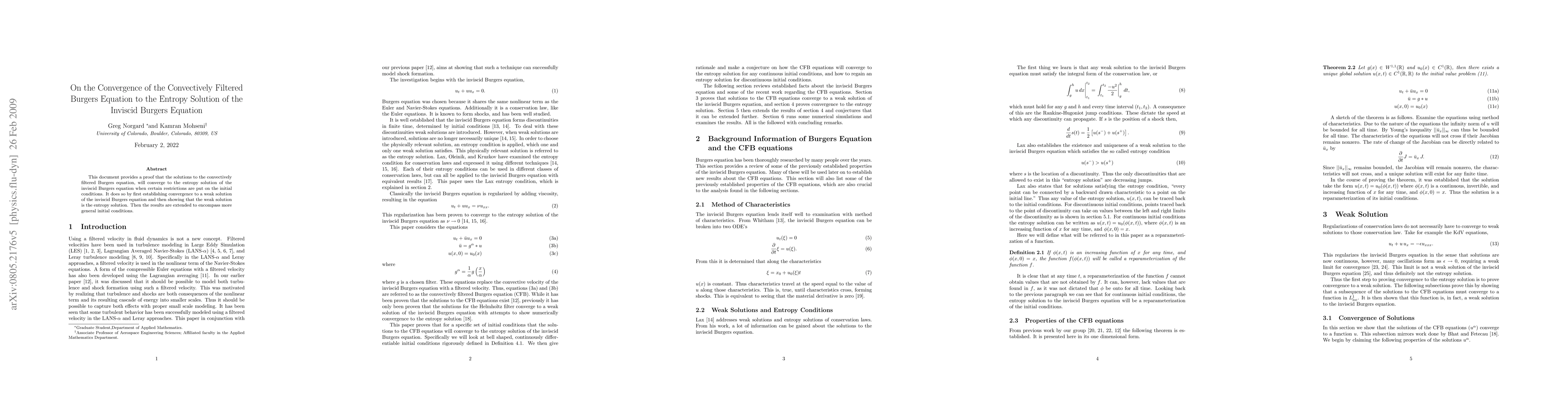 This document provides a proof that the solutions to the convectively filtered Burgers equation, will converge to the entropy solution of the inviscid Burgers equation when certain restrictions are put on the initial conditions. It does so by first establishing convergence to a weak solution of the inviscid Burgers equation and then showing that the weak solution is the entropy solution. Then the results are extended to encompass more general initial conditions.