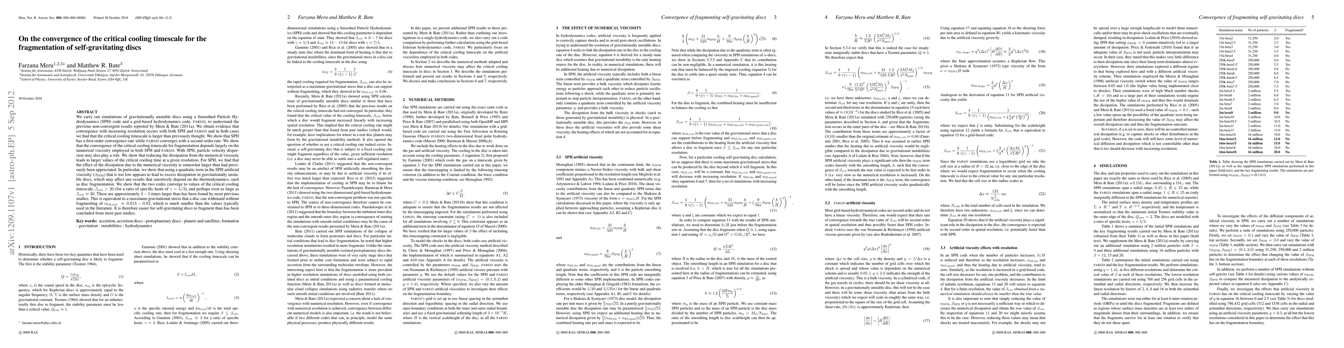 This paper investigates the convergence of the critical cooling timescale for the fragmentation of self-gravitating discs using SPH and FARGO simulations. The study finds that the critical cooling timescale is significantly larger than previously estimated, with SPH converging at a first-order rate and FARGO at a second-order rate, suggesting that numerical viscosity and particle velocity dispersion play crucial roles in determining fragmentation thresholds.