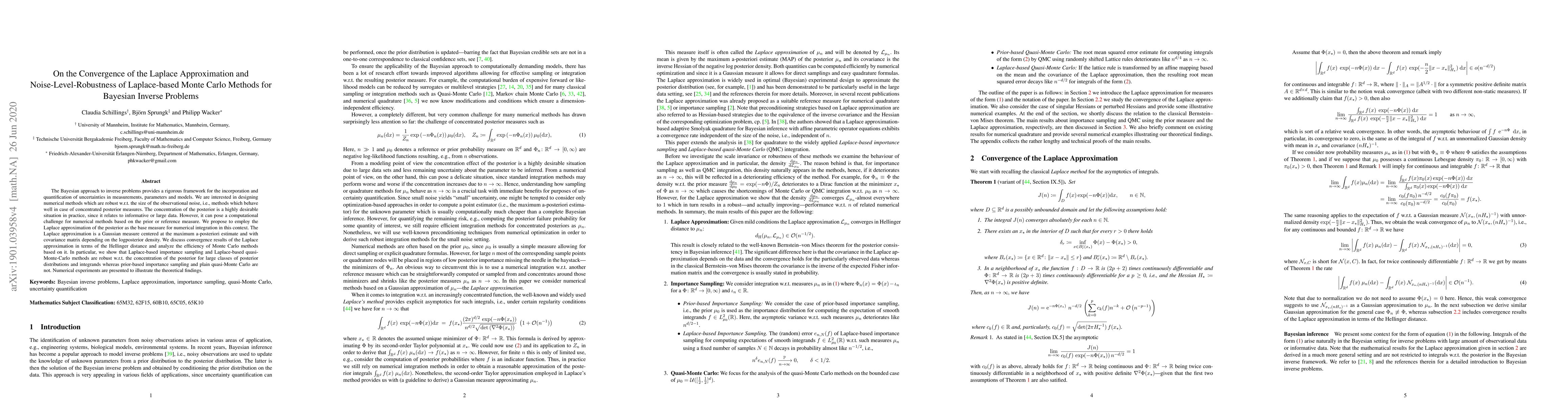 This paper investigates the convergence of the Laplace approximation for Bayesian inverse problems and demonstrates the robustness of Laplace-based Monte Carlo methods against noise levels, especially in scenarios with concentrated posterior measures. Theoretical results show that these methods outperform prior-based methods in such contexts, supported by numerical experiments.