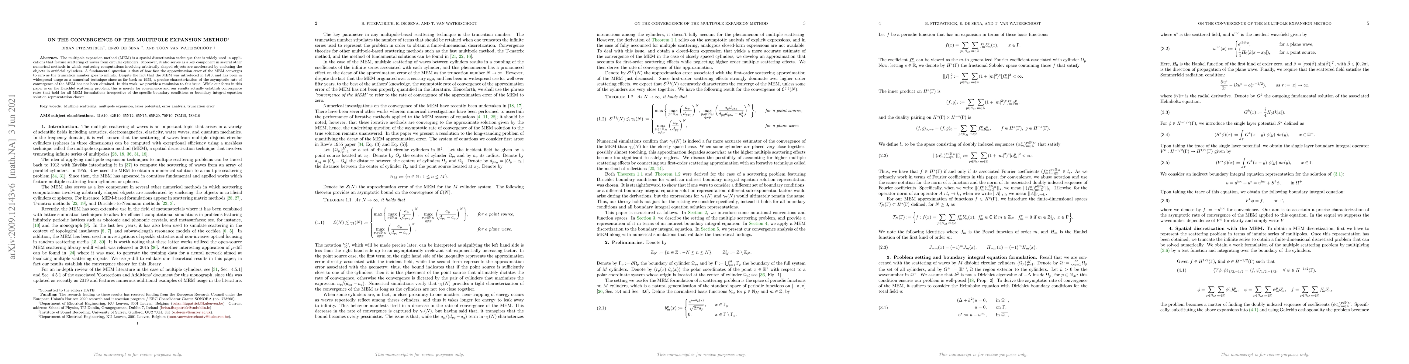 This paper resolves a long-standing issue in the multipole expansion method (MEM) by providing a precise characterization of its asymptotic rate of convergence to zero as the truncation number goes to infinity.