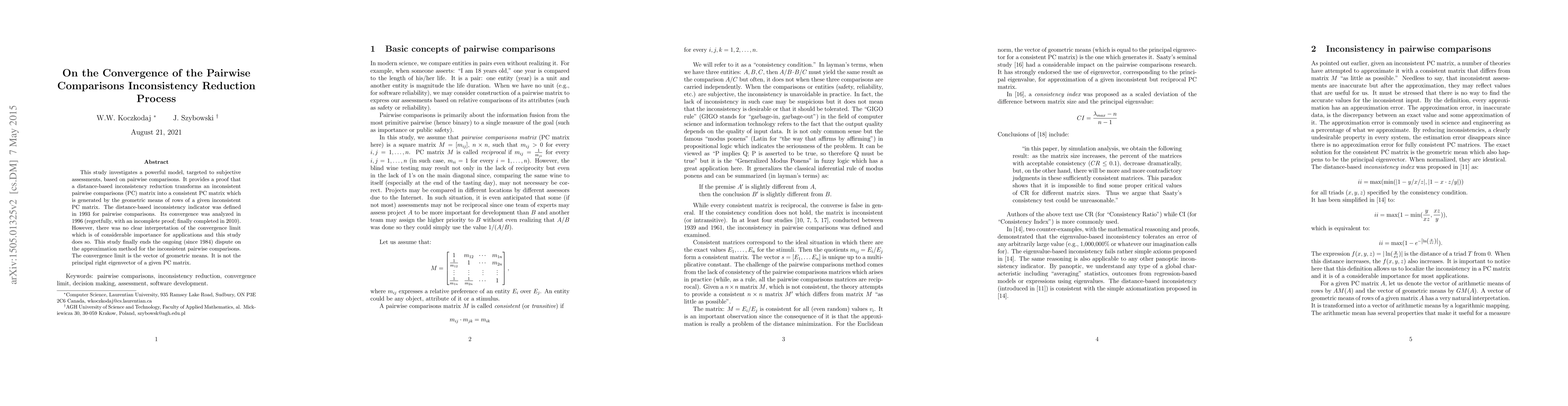 This study proves that a distance-based inconsistency reduction method transforms an inconsistent pairwise comparisons matrix into a consistent one, using geometric means. It clarifies the convergence limit of the method, which was previously incomplete, to provide clearer applications.