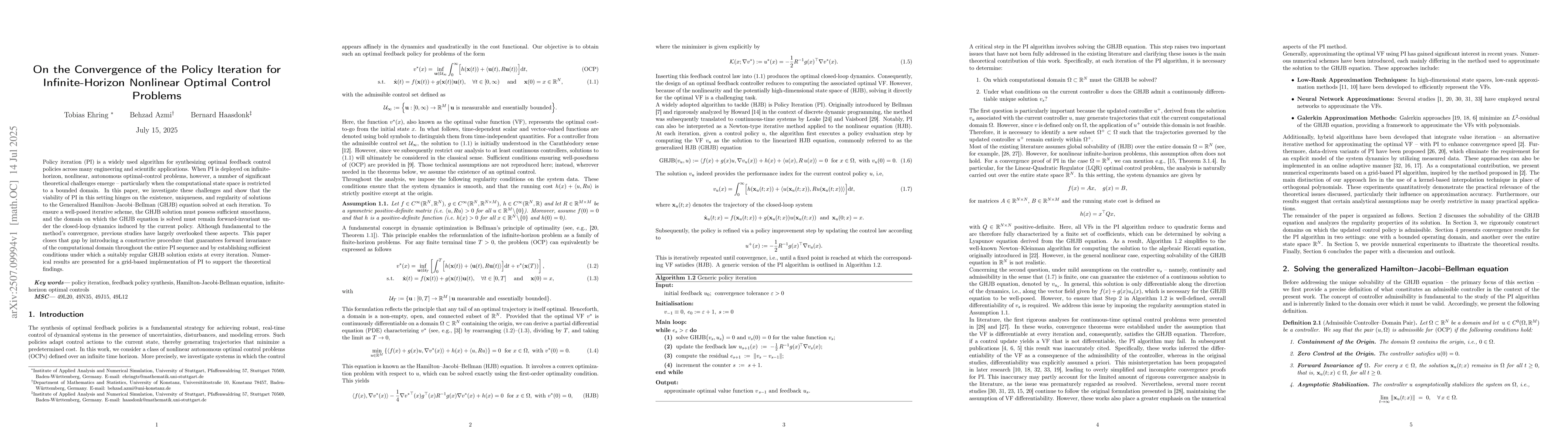 Policy iteration (PI) is a widely used algorithm for synthesizing optimal feedback control policies across many engineering and scientific applications. When PI is deployed on infinite-horizon, nonlinear, autonomous optimal-control problems, however, a number of significant theoretical challenges emerge - particularly when the computational state space is restricted to a bounded domain. In this paper, we investigate these challenges and show that the viability of PI in this setting hinges on the existence, uniqueness, and regularity of solutions to the Generalized Hamilton-Jacobi-Bellman (GHJB) equation solved at each iteration. To ensure a well-posed iterative scheme, the GHJB solution must possess sufficient smoothness, and the domain on which the GHJB equation is solved must remain forward-invariant under the closed-loop dynamics induced by the current policy. Although fundamental to the method's convergence, previous studies have largely overlooked these aspects. This paper closes that gap by introducing a constructive procedure that guarantees forward invariance of the computational domain throughout the entire PI sequence and by establishing sufficient conditions under which a suitably regular GHJB solution exists at every iteration. Numerical results are presented for a grid-based implementation of PI to support the theoretical findings.