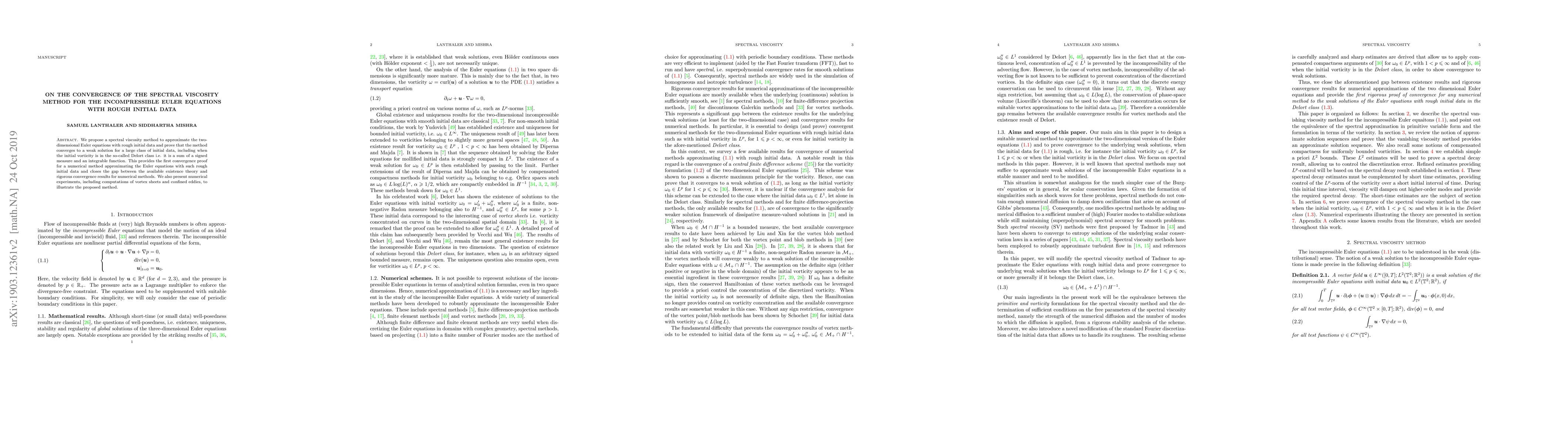 This paper proposes a spectral viscosity method to approximate the two-dimensional incompressible Euler equations with rough initial data, proving its convergence to a weak solution for a broad class of initial conditions. It closes the gap between existence theory and convergence results for numerical methods in this context.