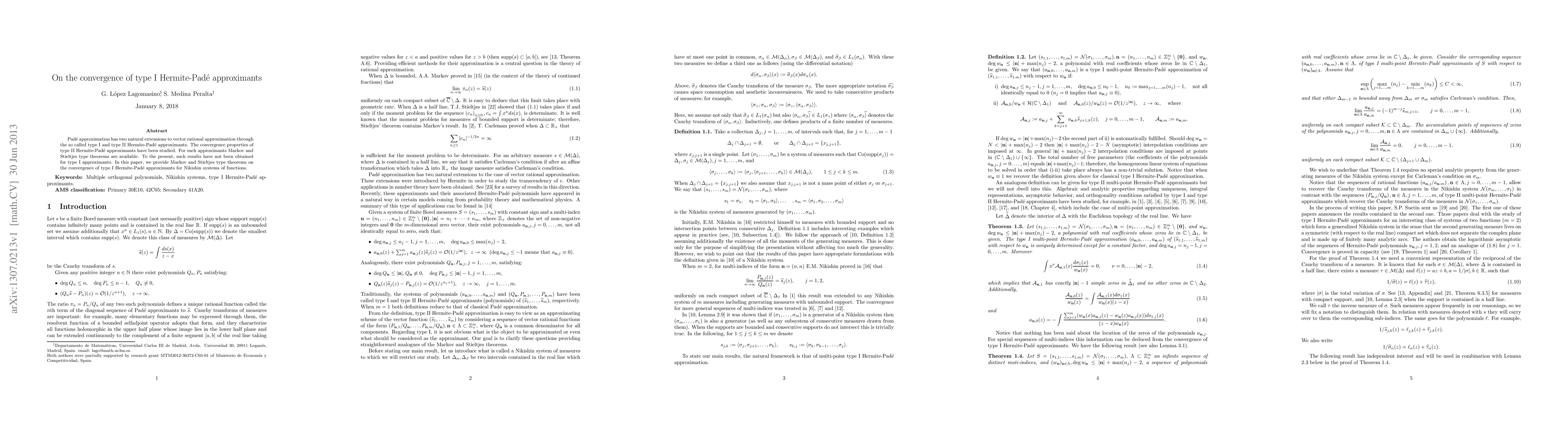 This paper establishes Markov and Stieltjes type theorems for the convergence of type I Hermite-Pad\'e approximants, extending previous studies on type II approximants to Nikishin systems of functions. It fills a gap in the convergence analysis for type I approximants.