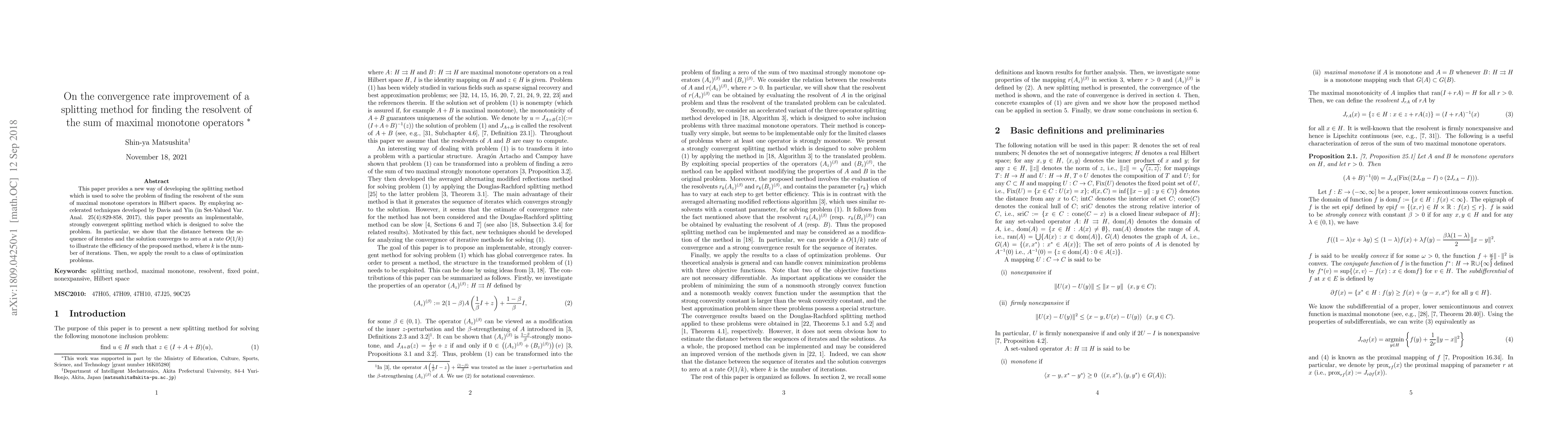 This paper introduces an improved splitting method for finding the resolvent of maximal monotone operator sums in Hilbert spaces, achieving O(1/k) convergence rate using Davis and Yin's accelerated techniques. The method's efficiency is demonstrated through application to optimization problems.