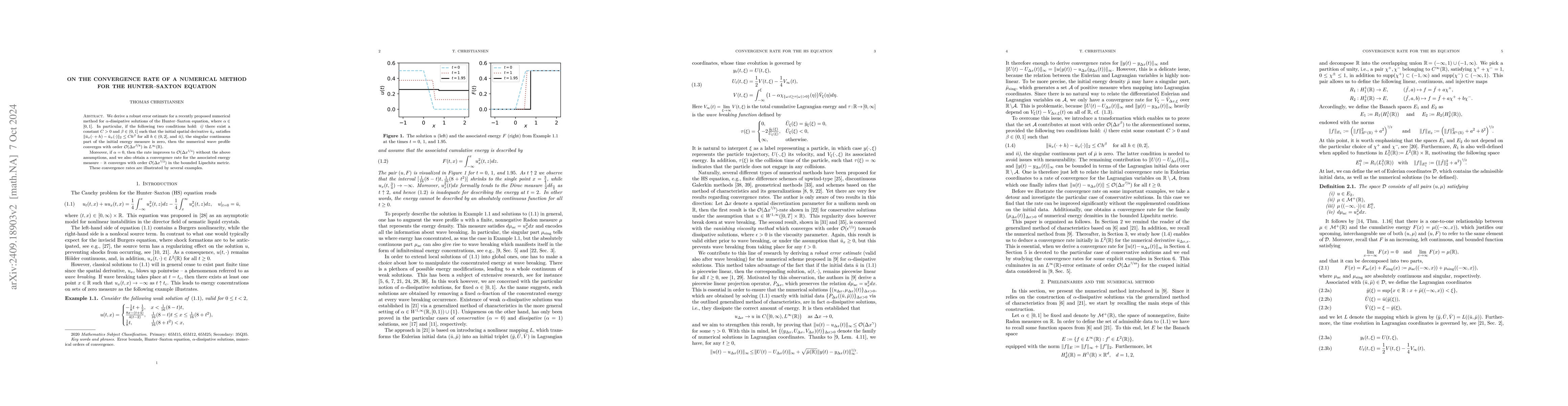 We derive a robust error estimate for a recently proposed numerical method for $\alpha$-dissipative solutions of the Hunter-Saxton equation, where $\alpha \in [0, 1]$. In particular, if the following two conditions hold: i) there exist a constant $C > 0$ and $\beta \in (0, 1]$ such that the initial spatial derivative $\bar{u}_{x}$ satisfies $\|\bar{u}_x(\cdot + h) - \bar{u}_x(\cdot)\|_2 \leq Ch^{\beta}$ for all $h \in (0, 2]$, and ii), the singular continuous part of the initial energy measure is zero, then the numerical wave profile converges with order $O(\Delta x^{\frac{\beta}{8}})$ in $L^{\infty}(\mathbb{R})$. Moreover, if $\alpha=0$, then the rate improves to $O(\Delta x^{\frac{1}{4}})$ without the above assumptions, and we also obtain a convergence rate for the associated energy measure - it converges with order $O(\Delta x^{\frac{1}{2}})$ in the bounded Lipschitz metric. These convergence rates are illustrated by several examples.