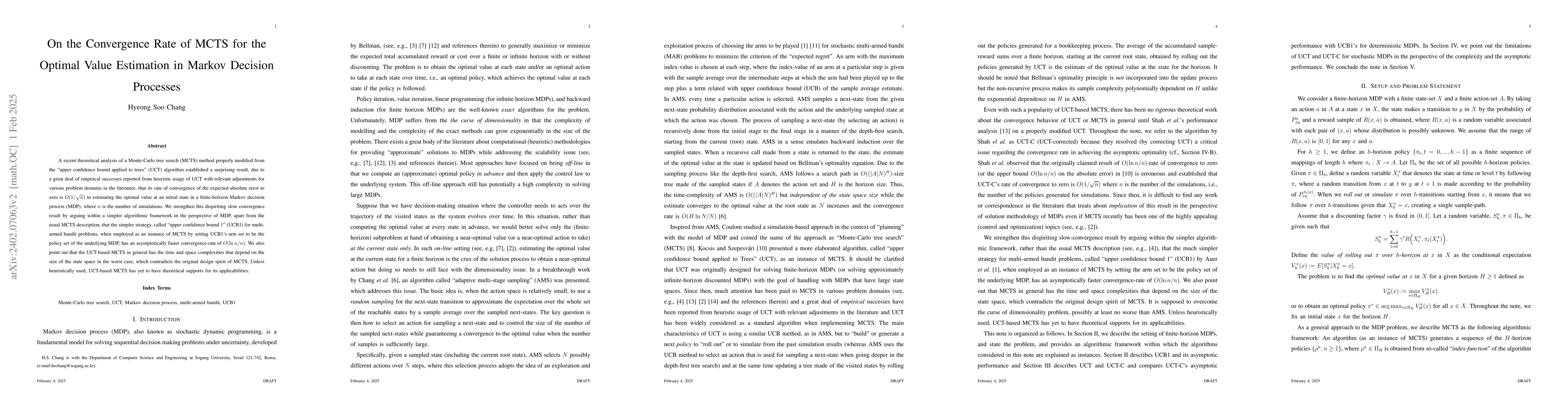 A recent theoretical analysis of a corrected-version of a Monte-Carlo tree search (MCTS) method, so-called UCT, established an unexpected result, due to a great deal of empirical successes reported from heuristic usage of UCT with relevant adjustments for the problem domains in the literature, that its convergence rate in estimating the expected error relative to the optimal value of a finite-horizon Markov decision process (MDP) at an initial state is polynomial. We strengthen this dispiriting slow-convergence result by arguing within a simpler framework in the perspective of MDP, apart from the usual MCTS description, that just simpler UCB1 applied with the policy set as the arm set is actually competitive with or asymptotically faster than the corrected-version of UCT because of its logarithmic convergence-rate. We also point out that MCTS in general has the worst-case time and space complexities that depend on the state-set size which contradicts the original spirit of MCTS. Unless heuristically used, UCT-based MCTS has yet to have theoretical supports for its applicabilities.