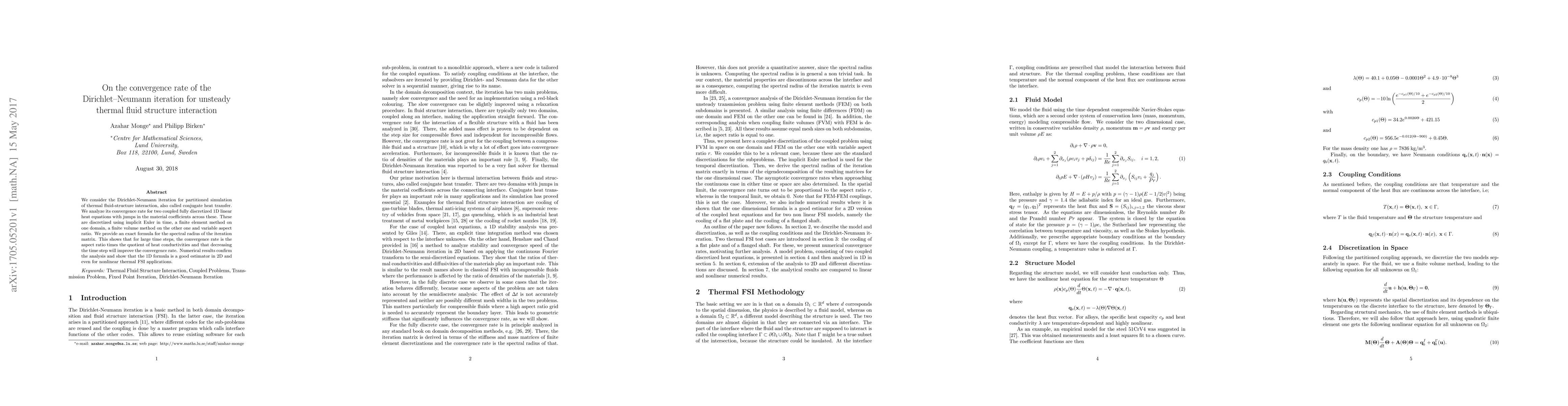 This paper analyzes the convergence rate of the Dirichlet-Neumann iteration for simulating thermal fluid-structure interaction, providing an exact formula for the spectral radius of the iteration matrix. It shows that convergence improves with smaller time steps and validates the 1D formula's applicability in 2D and nonlinear scenarios.