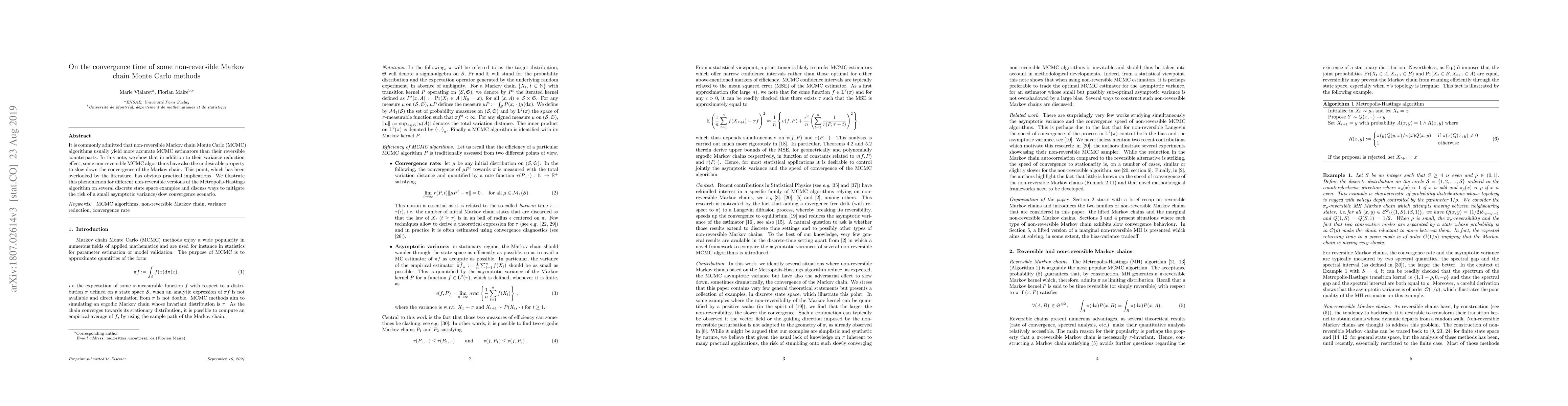 This paper investigates non-reversible MCMC algorithms, finding they often have lower variance but slower convergence compared to reversible methods. It highlights practical implications and explores mitigation strategies for the trade-off between variance reduction and convergence speed.