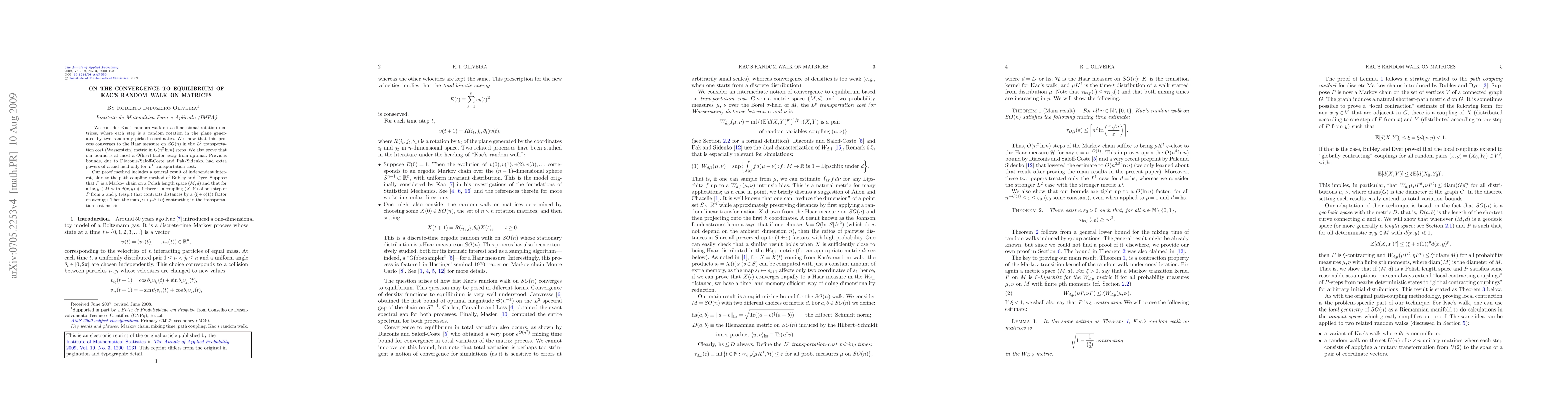 We consider Kac's random walk on $n$-dimensional rotation matrices, where each step is a random rotation in the plane generated by two randomly picked coordinates. We show that this process converges to the Haar measure on $\mathit{SO}(n)$ in the $L^2$ transportation cost (Wasserstein) metric in $O(n^2\ln n)$ steps. We also prove that our bound is at most a $O(\ln n)$ factor away from optimal. Previous bounds, due to Diaconis/Saloff-Coste and Pak/Sidenko, had extra powers of $n$ and held only for $L^1$ transportation cost. Our proof method includes a general result of independent interest, akin to the path coupling method of Bubley and Dyer. Suppose that $P$ is a Markov chain on a Polish length space $(M,d)$ and that for all $x,y\in M$ with $d(x,y)\ll1$ there is a coupling $(X,Y)$ of one step of $P$ from $x$ and $y$ (resp.) that contracts distances by a $(\xi+o(1))$ factor on average. Then the map $\mu\mapsto\mu P$ is $\xi$-contracting in the transportation cost metric.