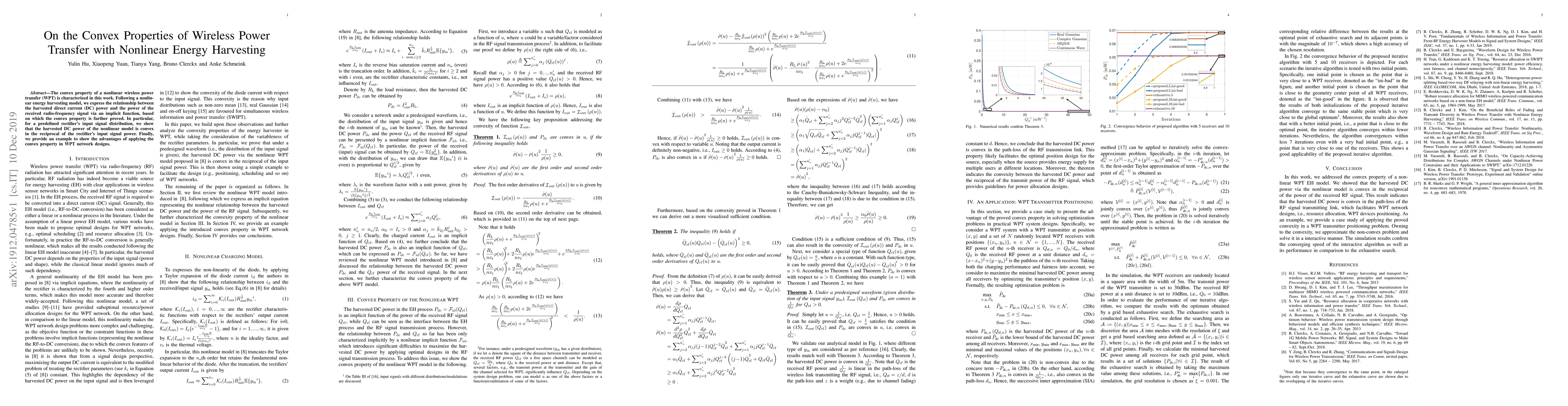 The convex property of a nonlinear wireless power transfer (WPT) is characterized in this work. Following a nonlinear energy harvesting model, we express the relationship between the harvested direct current (DC) power and the power of the received radio-frequency signal via an implicit function, based on which the convex property is further proved. In particular, for a predefined rectifier's input signal distribution, we show that the harvested DC power of the nonlinear model is convex in the reciprocal of the rectifier's input signal power. Finally, we provide an example to show the advantages of applying the convex property in WPT network designs.