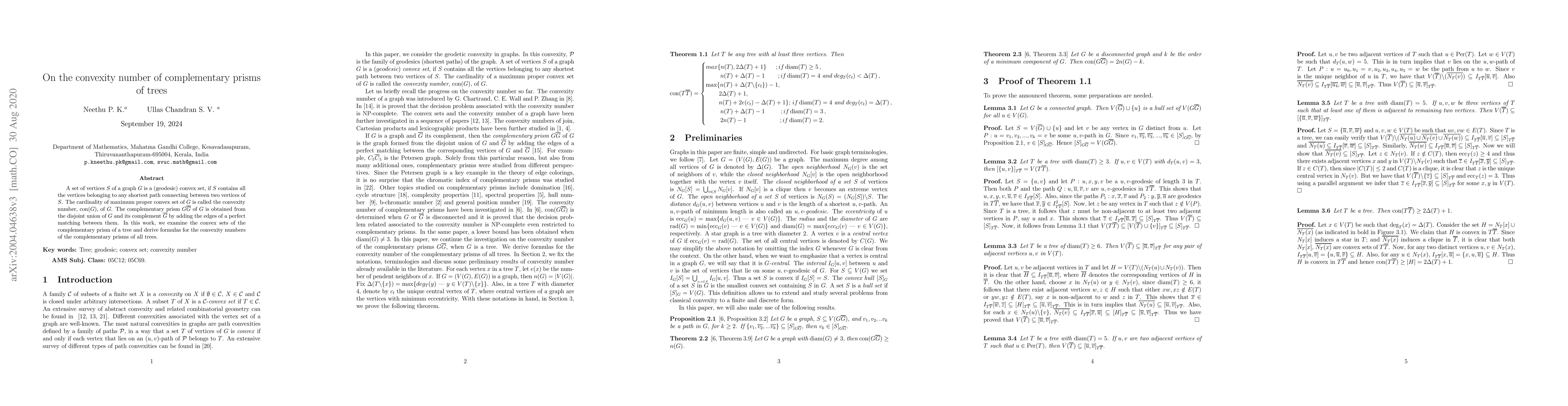 This research paper derives formulas for the convexity numbers of the complementary prisms of all trees, focusing on the properties of geodesic convex sets in these graphs.