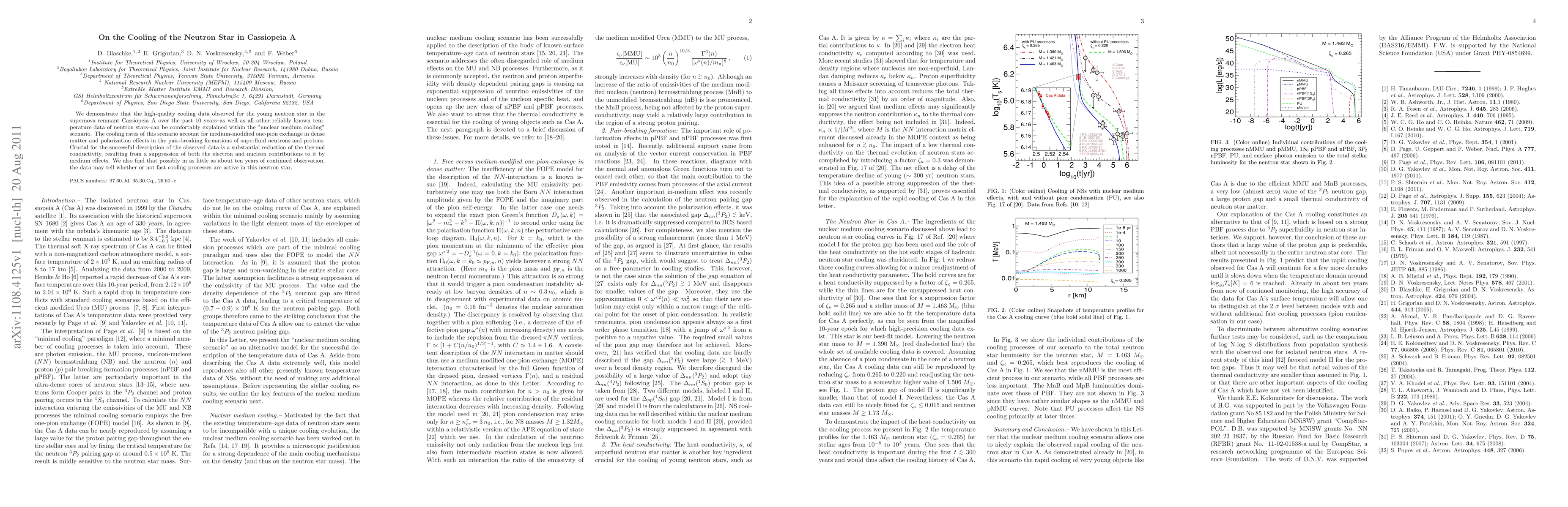 This paper explains the cooling data of the neutron star in Cassiopeia A using the "nuclear medium cooling" scenario, which incorporates medium-modified interactions and reduced thermal conductivity. It suggests that further observations over the next decade may reveal the presence of fast cooling processes.