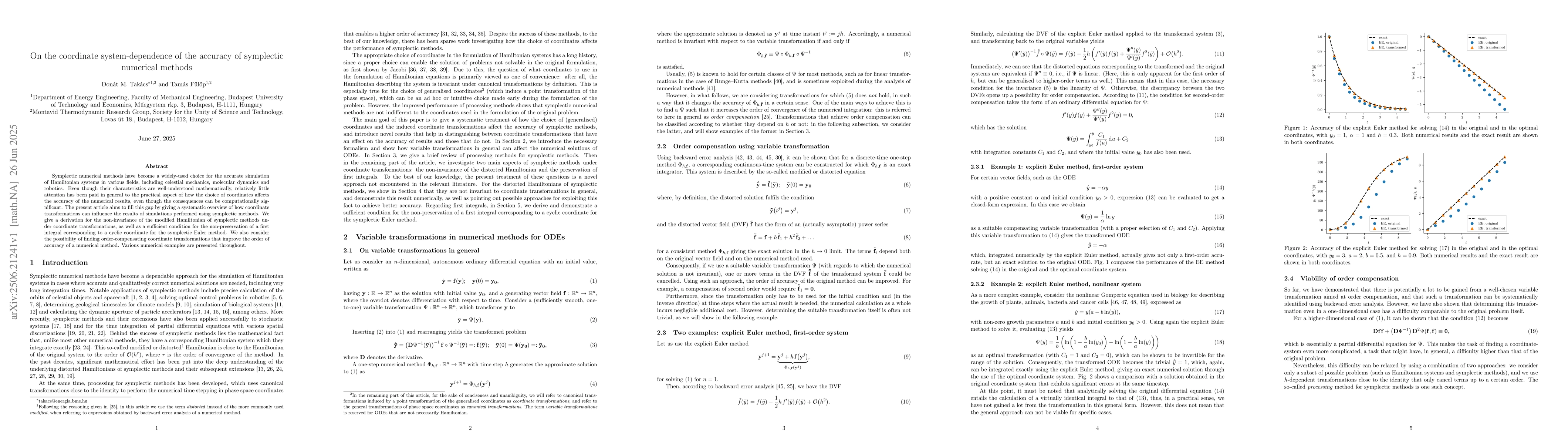 The study combines theoretical analysis of Hamiltonian invariance under coordinate transformations with numerical experiments on symplectic methods applied to classical systems, particularly the elastic pendulum.