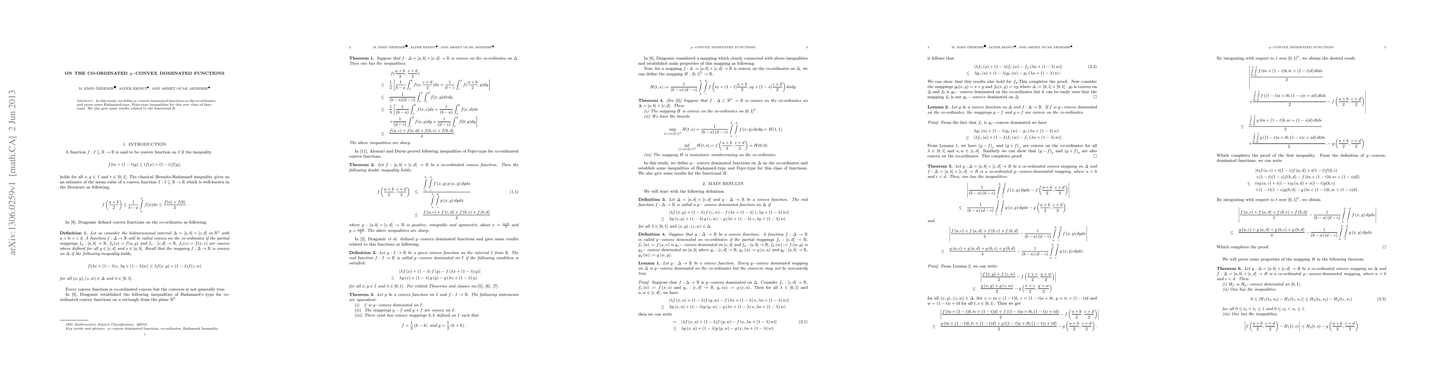 Researchers define g-convex dominated functions on coordinates and prove inequalities related to the functional H, expanding a new class of functions.