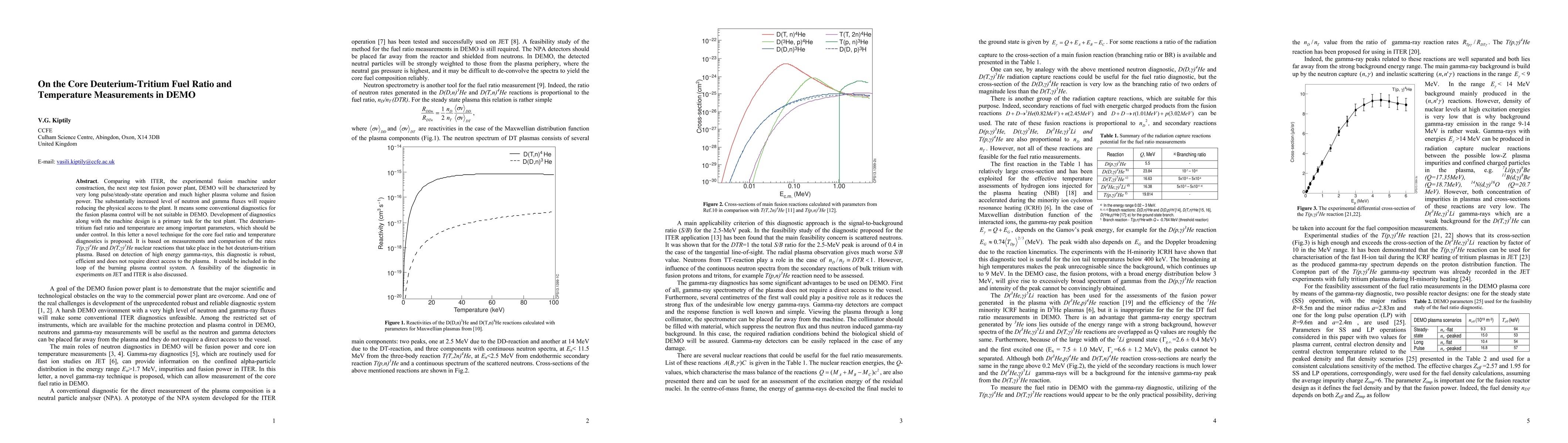Comparing with ITER, the experimental fusion machine under constraction, the next step test fusion power plant, DEMO will be characterized by very long pulse/steady-state operation and much higher plasma volume and fusion power. The substantially increased level of neutron and gamma fluxes will require reducing the physical access to the plant. It means some conventional diagnostics for the fusion plasma control will be not suitable in DEMO. Development of diagnostics along with the machine design is a primary task for the test plant. The deuterium- tritium fuel ratio and temperature are among important parameters, which should be under control. In this letter a novel technique for the core fuel ratio and temperature diagnostics is proposed. It is based on measurements and comparison of the rates T(p,{\gamma})4He and D(T,{\gamma})5He nuclear reactions that take place in the hot deuterium-tritium plasma. Based on detection of high energy gamma-rays, this diagnostic is robust, efficient and does not require direct access to the plasma. It could be included in the loop of the burning plasma control system. A feasibility of the diagnostic in experiments on JET and ITER is also discussed.