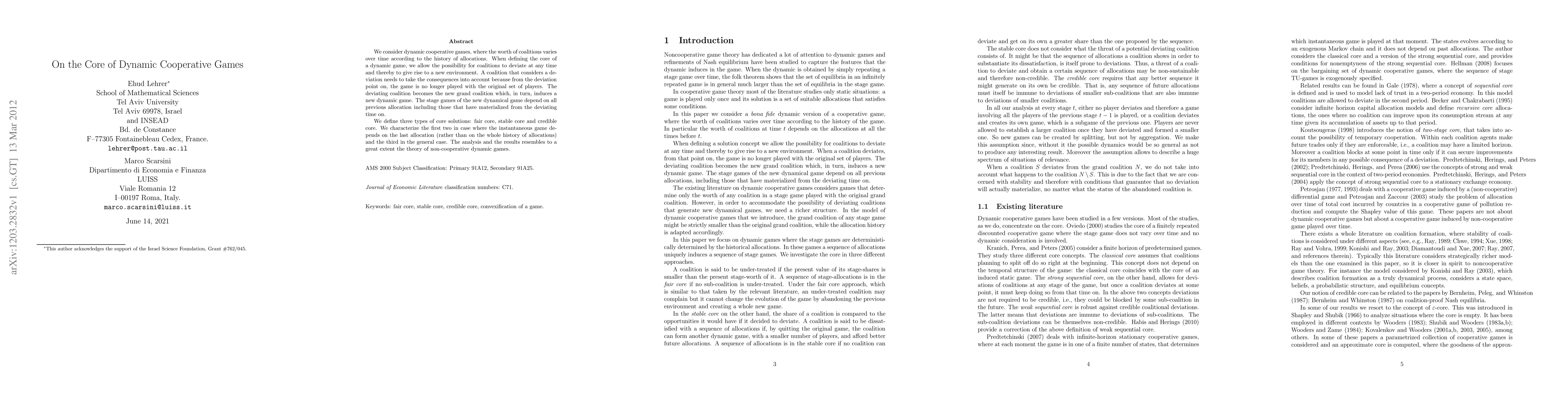 This paper explores dynamic cooperative games where coalitions' worth changes over time based on allocation history. It defines three core solutions—fair, stable, and credible—and characterizes the first two under specific conditions, while the third is analyzed in general scenarios, drawing parallels to non-cooperative dynamic game theory.