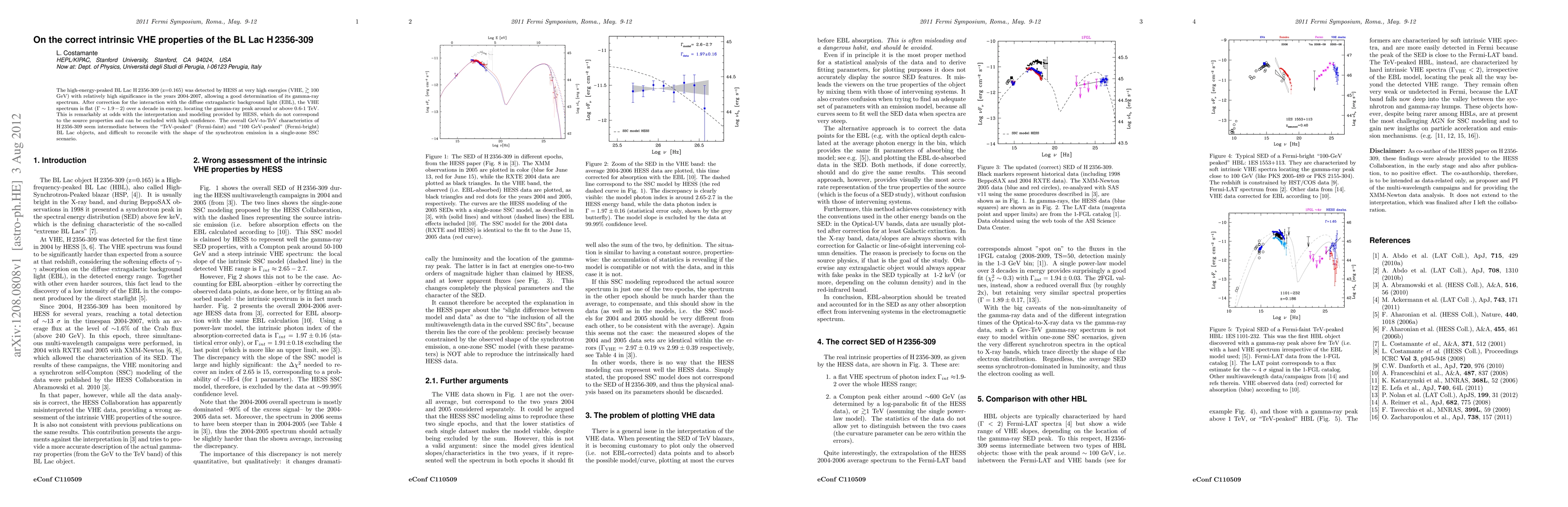 This paper analyzes the VHE gamma-ray spectrum of the BL Lac object H 2356-309, finding a flat spectrum above 0.6-1 TeV after correcting for EBL interactions, which contrasts with previous HESS interpretations. The source's GeV-to-TeV characteristics are intermediate between two BL Lac object types, complicating single-zone synchrotron modeling.