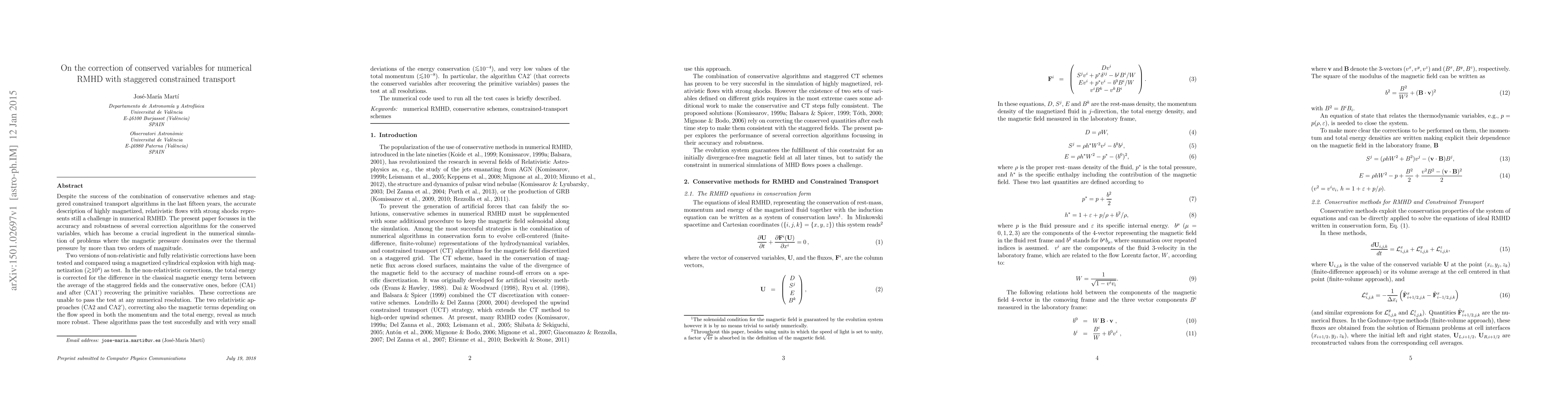 Despite the success of the combination of conservative schemes and staggered constrained transport algorithms in the last fifteen years, the accurate description of highly magnetized, relativistic flows with strong shocks represents still a challenge in numerical RMHD. The present paper focusses in the accuracy and robustness of several correction algorithms for the conserved variables, which has become a crucial ingredient in the numerical simulation of problems where the magnetic pressure dominates over the thermal pressure by more than two orders of magnitude. Two versions of non-relativistic and fully relativistic corrections have been tested and compared using a magnetized cylindrical explosion with high magnetization ($ \ge 10^4$) as test. In the non-relativistic corrections, the total energy is corrected for the difference in the classical magnetic energy term between the average of the staggered fields and the conservative ones, before (CA1) and after (CA1') recovering the primitive variables. These corrections are unable to pass the test at any numerical resolution. The two relativistic approaches (CA2 and CA2'), correcting also the magnetic terms depending on the flow speed in both the momentum and the total energy, reveal as much more robust. These algorithms pass the test succesfully and with very small deviations of the energy conservation ($\le 10^{-4}$), and very low values of the total momentum ($\le 10^{-8}$). In particular, the algorithm CA2' (that corrects the conserved variables after recovering the primitive variables) passes the test at all resolutions. The numerical code used to run all the test cases is briefly described.