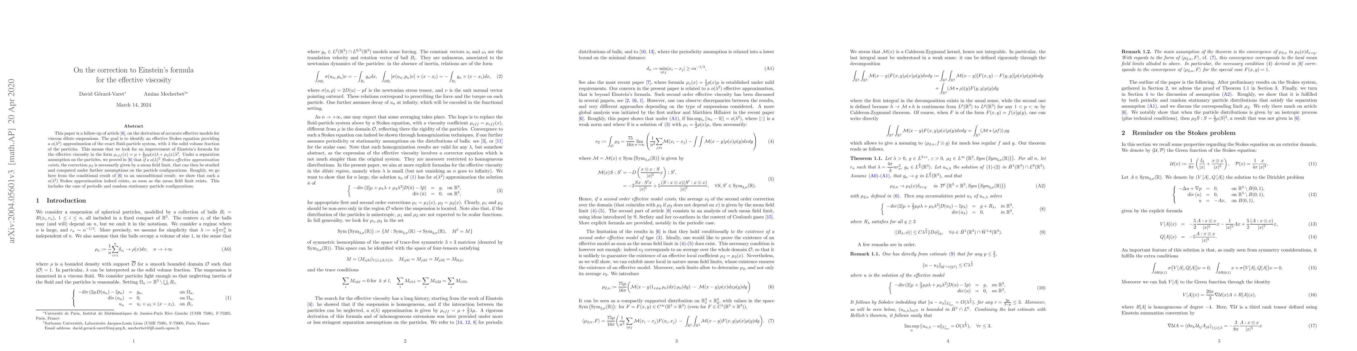 Researchers prove that an effective viscosity formula for dilute suspensions exists with a correction term of $o(\\lambda^2)$, improving upon Einstein's original formula.