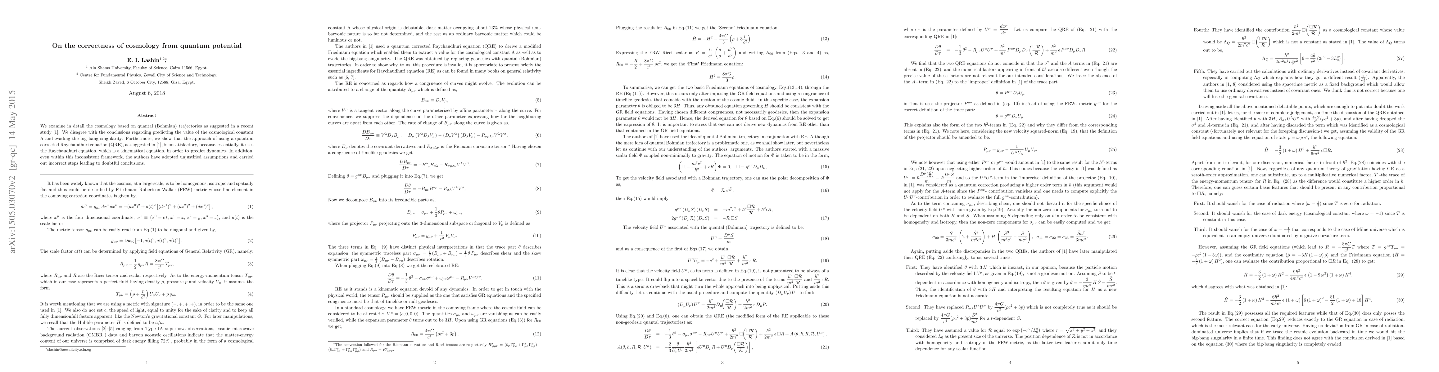 We examine in detail the cosmology based on quantal (Bohmian) trajectories as suggested in a recent study arXiv:1404.3093[gr-qc]. We disagree with the conclusions regarding predicting the value of the cosmological constant $\Lambda$ and evading the big bang singularity. Furthermore, we show that the approach of using a quantum corrected Raychaudhuri equation (QRE), as suggested in arXiv:1404.3093[gr-qc], is unsatisfactory, because, essentially, it uses the Raychaudhuri equation, which is a kinematical equation, in order to predict dynamics. In addition, even within this inconsistent framework, the authors have adopted unjustified assumptions and carried out incorrect steps leading to doubtful conclusions.