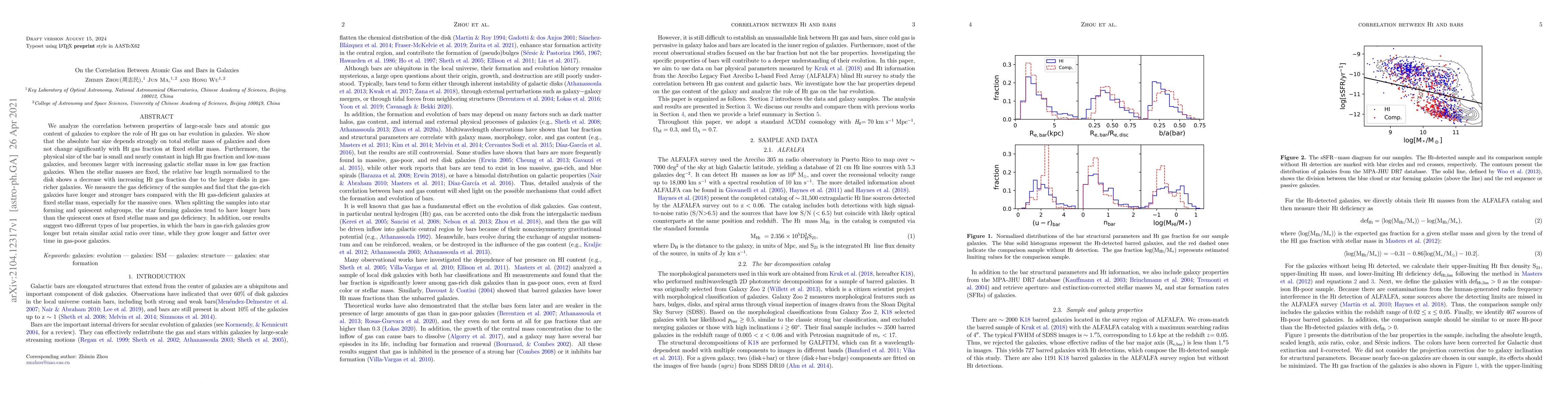 We analyze the correlation between properties of large-scale bars and atomic gas content of galaxies to explore the role of HI gas on bar evolution in galaxies. We show that the absolute bar size depends strongly on total stellar mass of galaxies and does not change significantly with HI gas fraction at fixed stellar mass. Furthermore, the physical size of the bar is small and nearly constant in high Hi gas fraction and low-mass galaxies, and becomes larger with increasing galactic stellar mass in low gas fraction galaxies. When the stellar masses are fixed, the relative bar length normalized to the disk shows a decrease with increasing HI gas fraction due to the larger disks in gas-richer galaxies. We measure the gas deficiency of the samples and find that the gas-rich galaxies have longer and stronger bars compared with the Hi gas-deficient galaxies at fixed stellar mass, especially for the massive ones. When splitting the samples into star forming and quiescent subgroups, the star forming galaxies tend to have longer bars than the quiescent ones at fixed stellar mass and gas deficiency. In addition, our results suggest two different types of bar properties, in which the bars in gas-rich galaxies grow longer but retain similar axial ratio over time, while they grow longer and fatter over time in gas-poor galaxies.