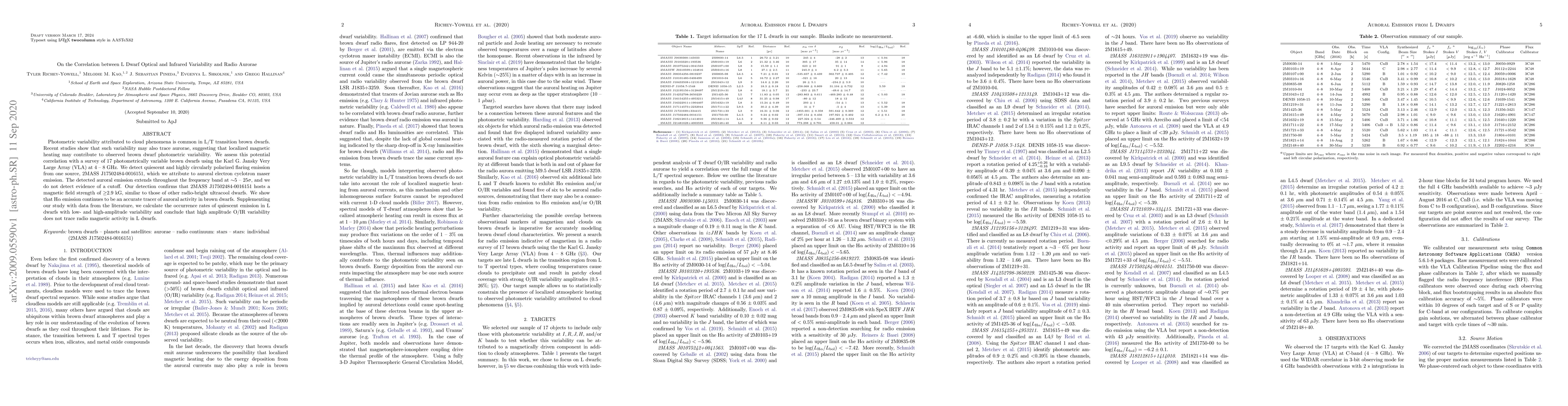 This study investigates the correlation between optical/infrared variability in L/T transition brown dwarfs and radio aurorae, finding that one source, 2MASS J17502484-0016151, exhibits auroral radio emission indicative of a strong magnetic field. The research concludes that high-amplitude optical/infrared variability does not correlate with radio magnetic activity in L dwarfs.