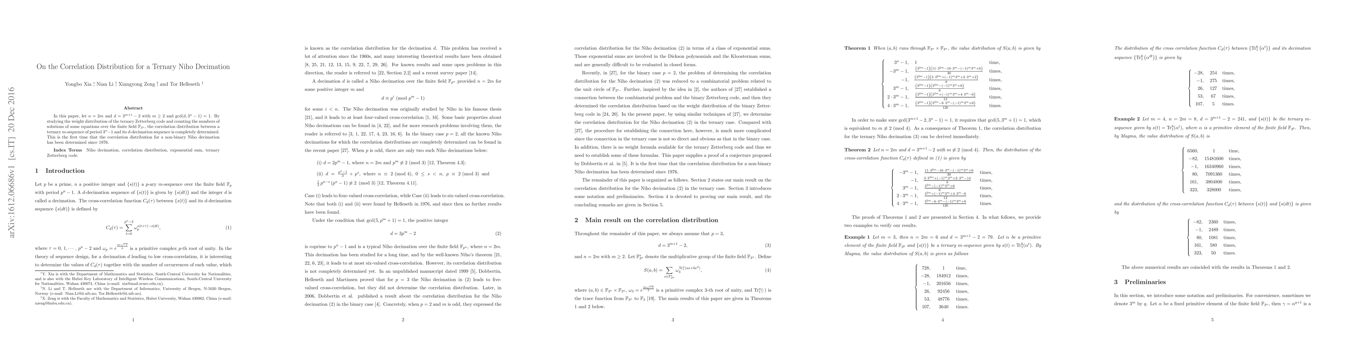 This paper determines the correlation distribution for a ternary Niho decimation sequence, analyzing the weight distribution of the ternary Zetterberg code and counting solutions over $\mathbb{F}_{3^n}$. This marks the first determination of such a distribution for non-binary Niho decimation since 1976.