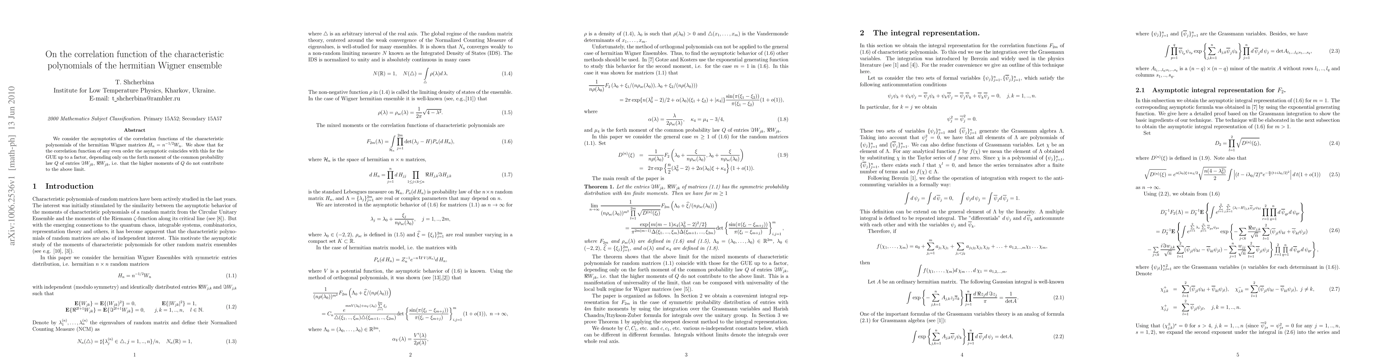 This research paper investigates the asymptotic behavior of correlation functions of characteristic polynomials for hermitian Wigner matrices, showing that higher moments of the underlying probability law do not affect the result, which coincides with the GUE up to a factor dependent on its fourth moment.